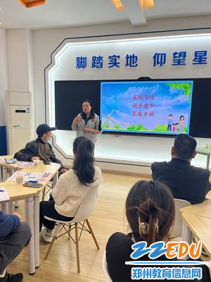 郑州99中学管中心主任赵晶则与家长们分享学校的教育转化管理模式。她详细介绍学校在教育转化方面的成功案例和经验做法,并强调家长在此过程中的重要作用。她表示,家长可以通过积极参与学校的各项活动、关注孩子的思想动态、提供必要的家庭教育支持等方式,与学校形成合力,共同推动孩子的教育转化。