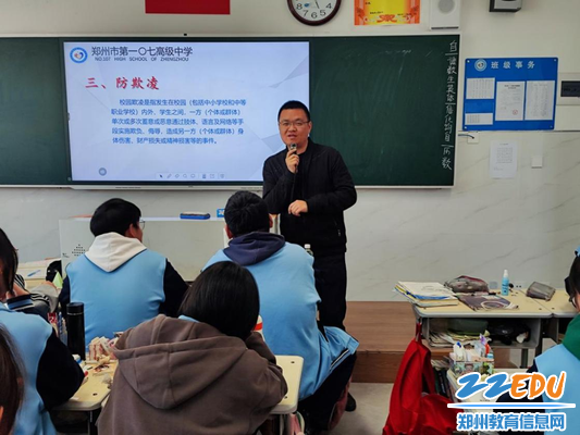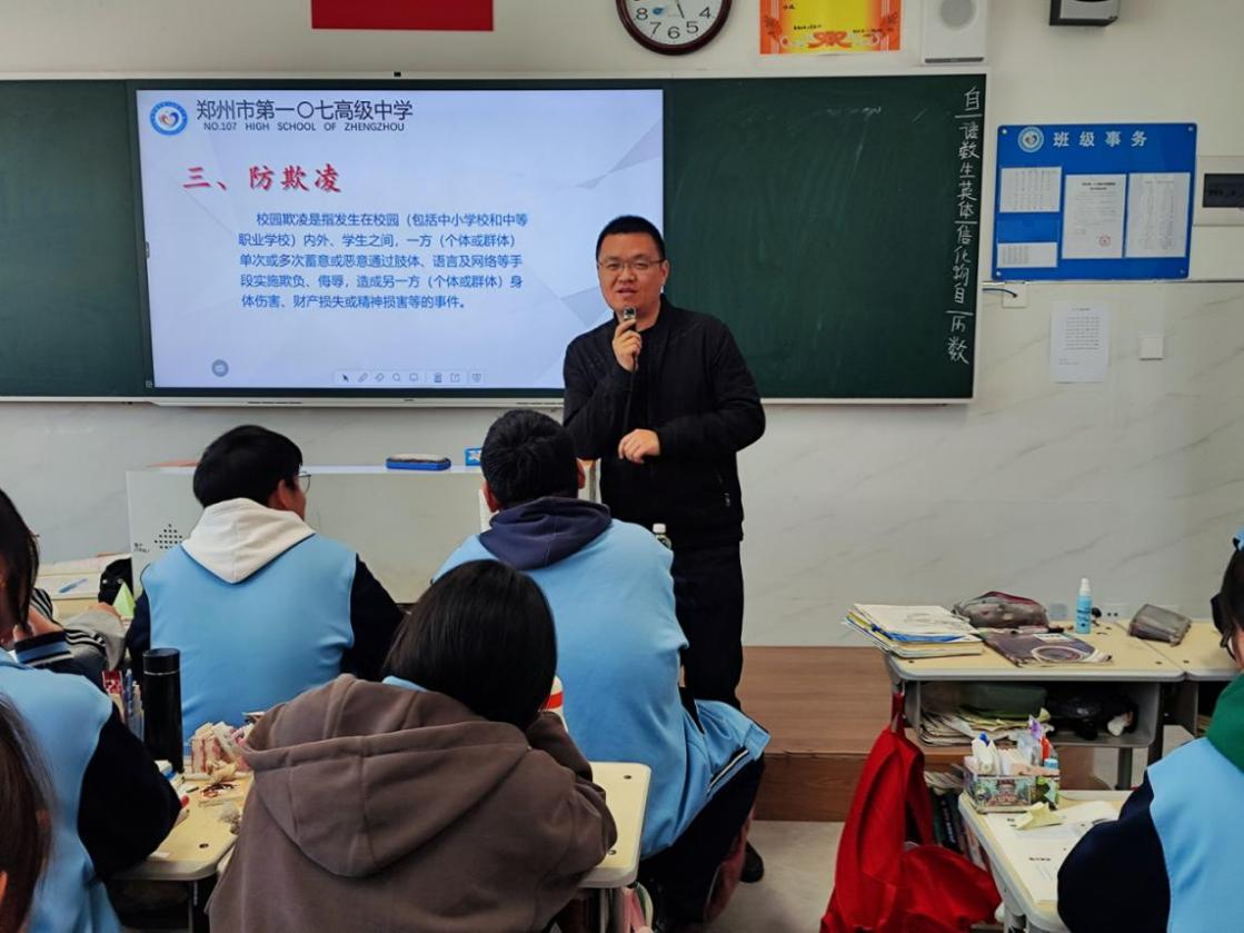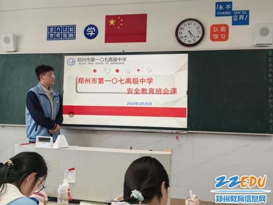 随着第29个全国中小学生安全教育日的到来,郑州市第一〇七高级中学积极响应号召,于2024年3月25日下午召开安全教育主题班会。此次班会深入浅出地向学生们传授了关于防溺水、交通安全、防欺凌教育以及心理健康教育等多方面的安全知识。
