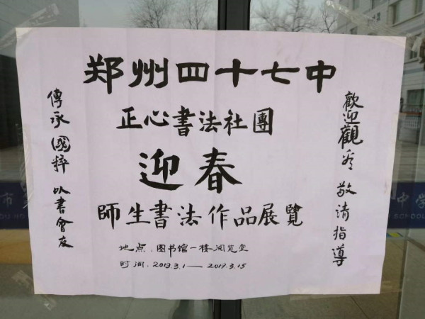 郑州47中举办迎春书法作品展