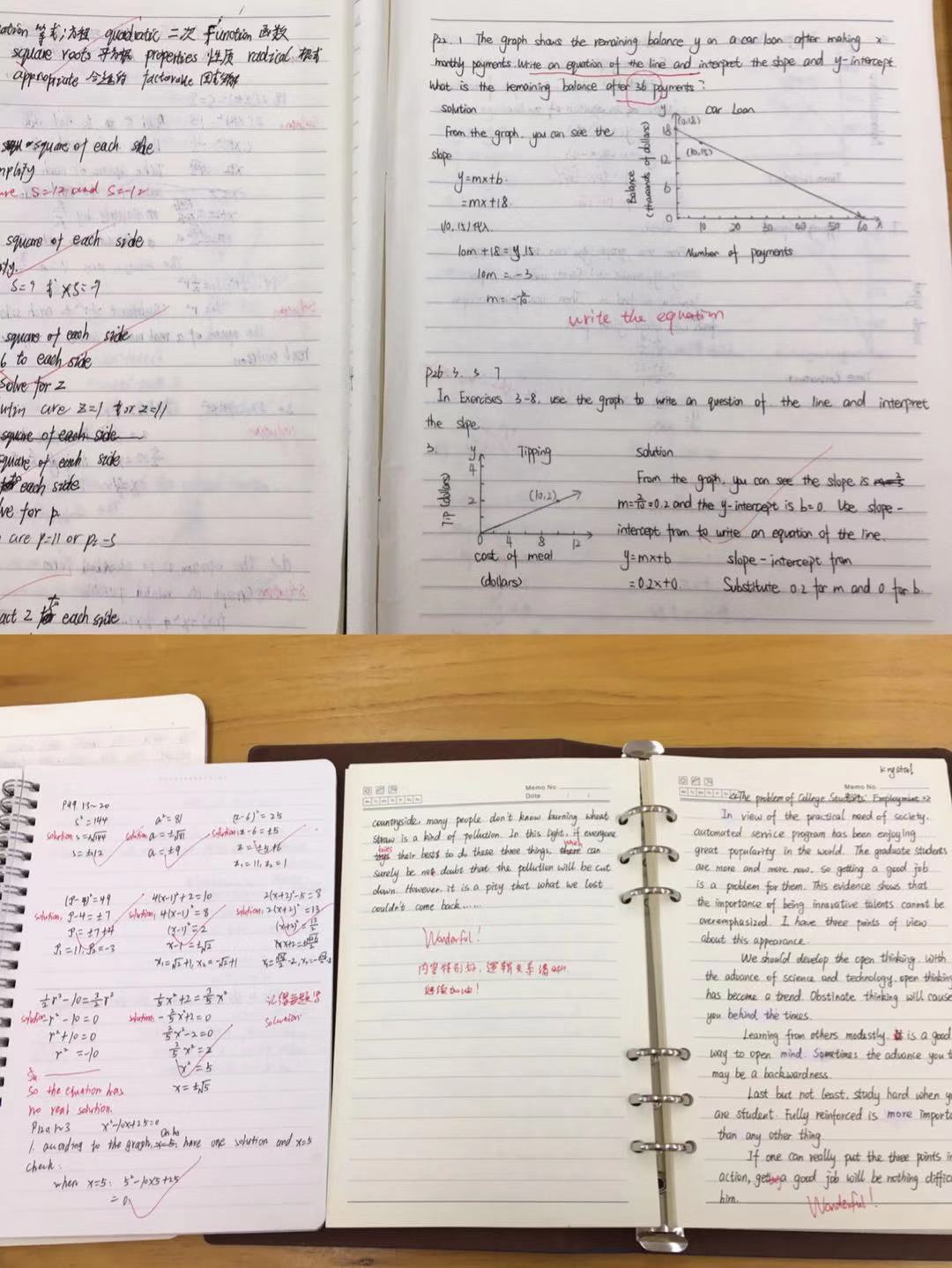 数学双语作业,每一页都有老师的认真批改和评语。