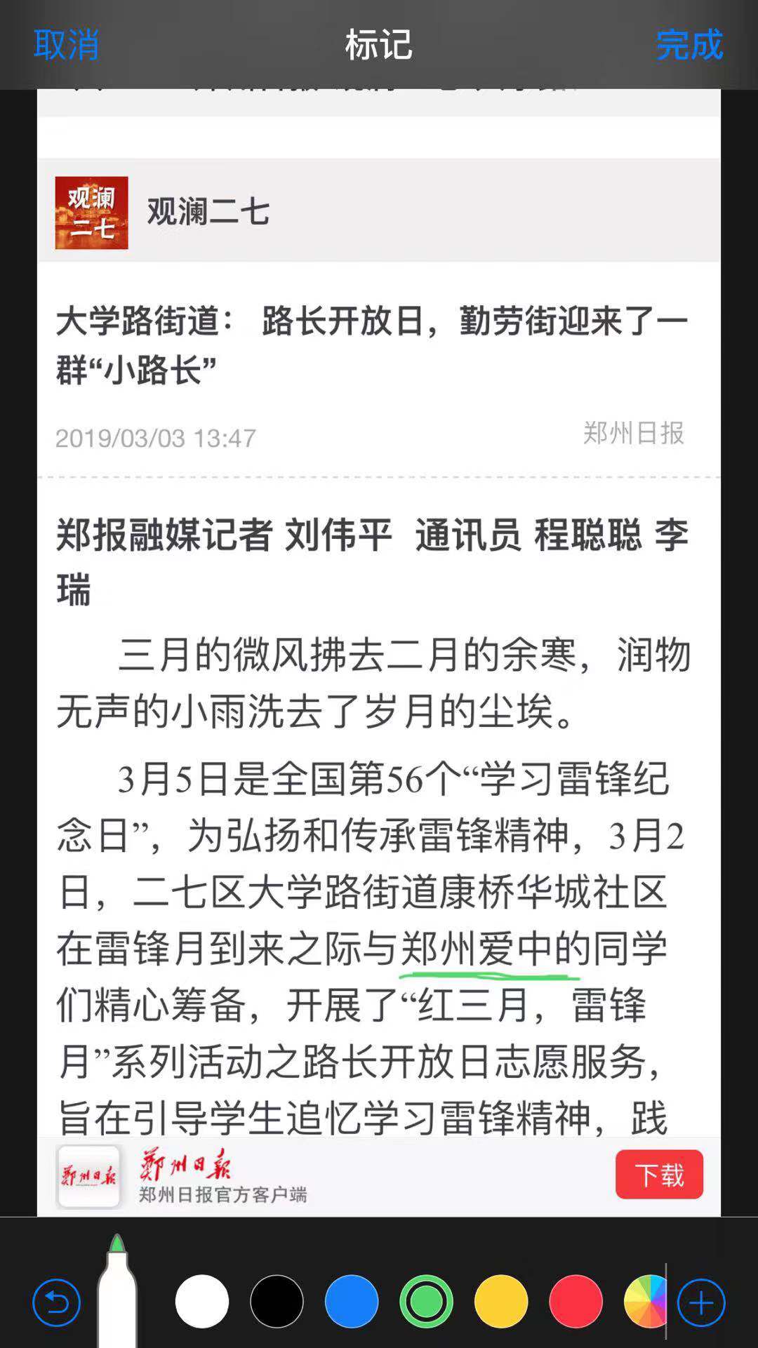 《郑州日报》报道郑州爱中志愿者学习雷锋活动截图