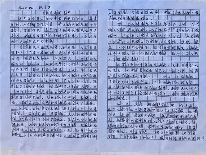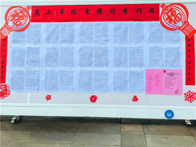 各班主任与任课老师一同对学生假期作业完成情况进行评选, 每班各科选出了优秀寒假作业前五名。各学科组把书写工整、字迹清楚、格式规范的作业进行汇总,并制成展板在食堂门口小广场上进行展示。下面让我们一起来欣赏一下学子们的风采吧!