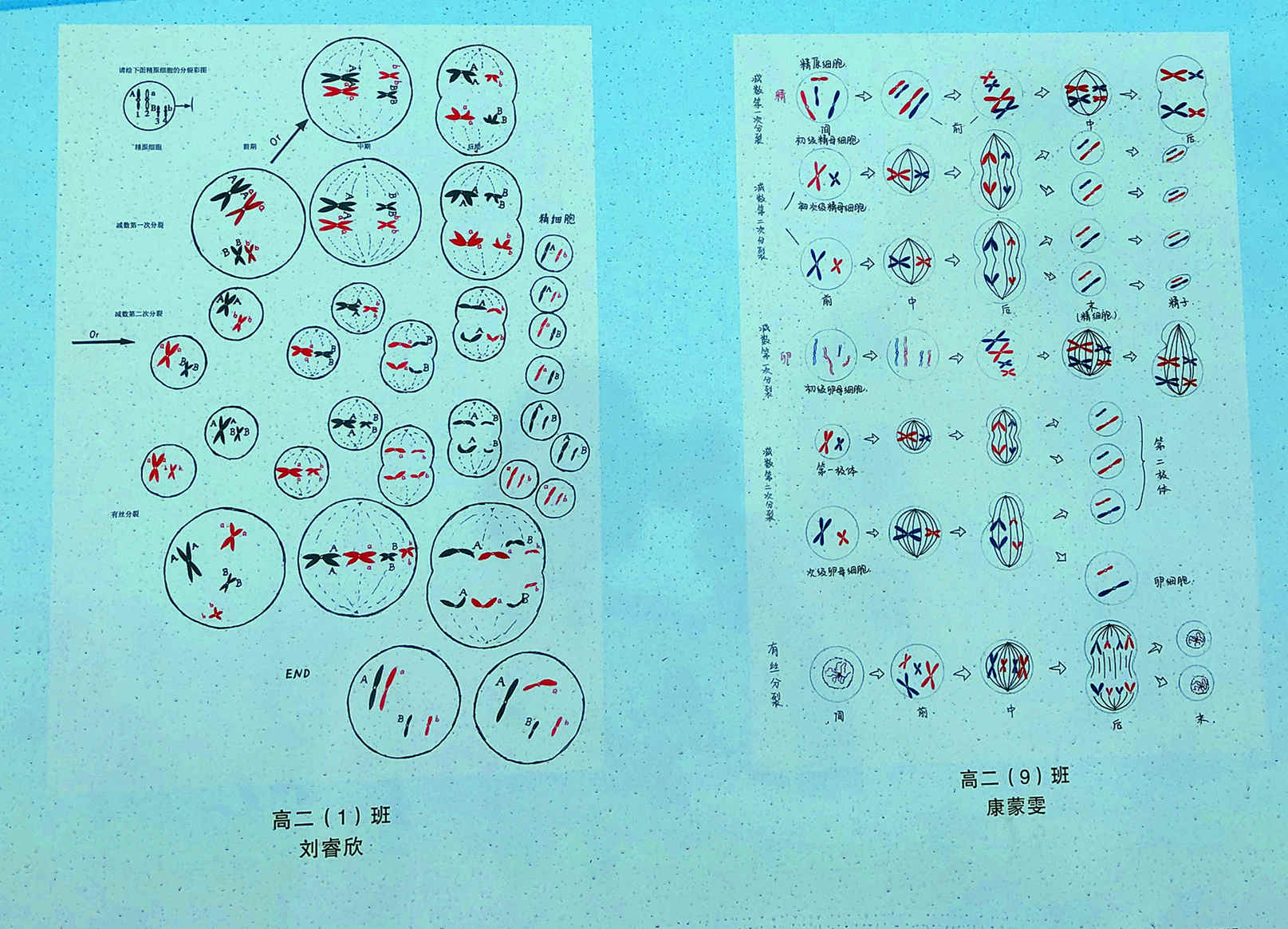 郑州47中一直都有假期后认真检查作业,并进行优秀假期作业评比的优良传统。根据学科性质,各科的作业展也是形式多样:有手抄报、名著观后感,也有结合民俗看改革开放的征文比赛;有形象生动的细胞分裂流程图,也有严谨工整的公式运算。学生们在路过食堂时看到这些书写工整、格式标准、形式多样的参展作业,不时发出一阵阵赞叹之声。