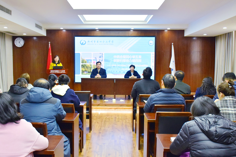东风送暖春回大地,暖日融融万象更新。3月6日下午,郑州47中分年级召开了以推进学校扁平化管理为主要内容的全体教师会。该校国际部教师会在行政楼第四会议室召开,主题为“中西合璧同心举五育 创新归厚协力建四园”。学校纪委书记齐建辉 、工会主席刘鹏云出席会议并发表讲话,国际部全体教师参加了会议。