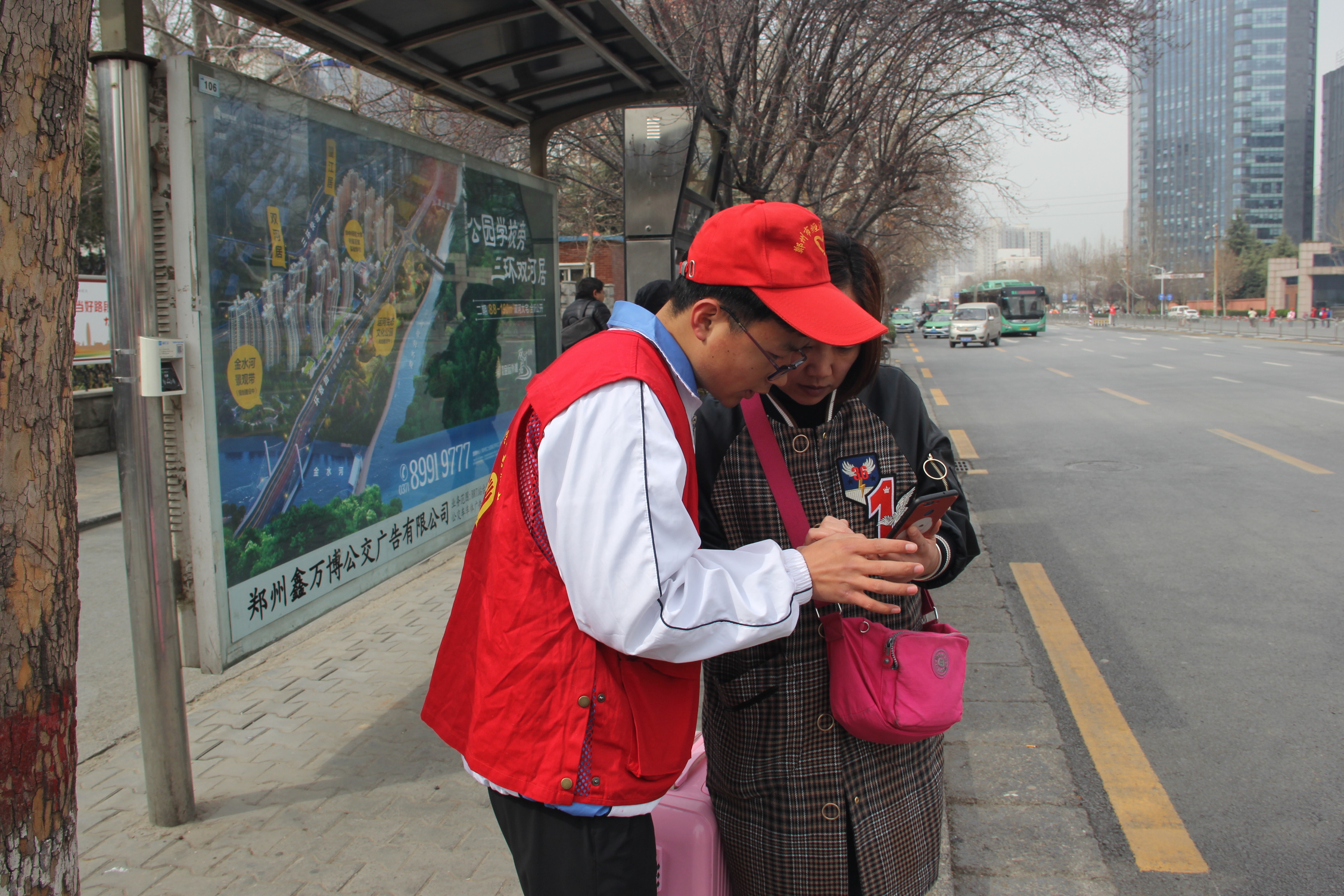 3月13日,由郑州市公交三公司、郑州市交运集团和郑州市经济贸易学校联合举办的“文明郑州,践行文明条例”主题活动在郑州市航海路京广路汽车客运总站顺利开展。郑州市经济贸易学校志愿服务队在校团委书记贾玮和办公室主任张磊的带领下,一早便来到了目的地。在客运总站负责人介绍活动背景、说明活动内容和安排任务之后,经贸志愿者们就迫不及待地投入了各自的岗位,开始了紧张有序的忙碌。