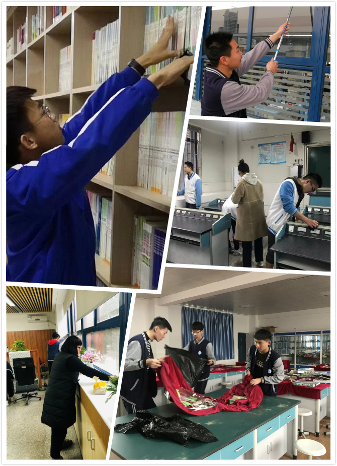 在学雷锋志愿服务活动月中,学校电子屏主题突出,营造浓厚的“学雷锋”氛围,结合宣传栏、黑板报、学习园地、主题班会等各种意义深远、行之有效的形式开展“学雷锋”活动,带领学生走近雷锋,践行雷锋精神。除此之外,学校德育处、团委组织了一场“我为四园添光彩”的主题校园清扫活动,组织学生清扫图书馆和实验室,为学校清理垃圾、卫生死角,从身边做起,从小事做起,以实际行动,发扬雷锋的精神。