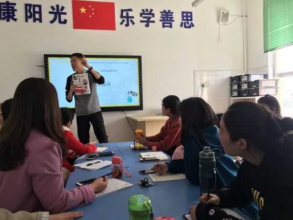3月20日下午,大河路中心小学组织全体教师开展了STEAM教育专题培训活动。此次培训学校专门邀请STEAM教育领域的专家万里冰老师。培训开始,万老师便以幽默诙谐的语言,很快消除了大家的陌生感,而其关于STEAM教育的种种干货,又使得老师们很快便沉浸在知识的海洋中,汲取着新知识的营养。