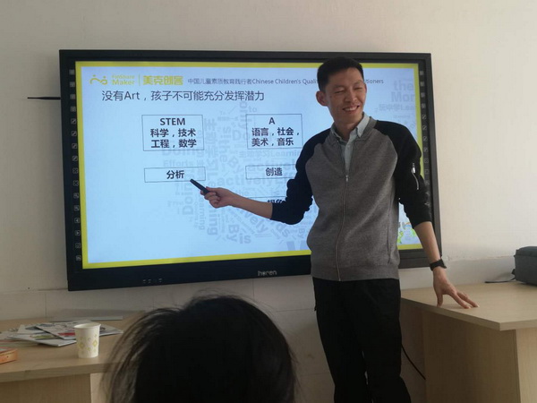 而后,万老师又通过具体的事例阐述STEAM教育的精髓。STEAM教育就是跨学科的融合。现代科学技术,都是全学科融合的技术,这就要求大家改变现有的思考问题与解决问题的思路,要将所有学科知识融合在一起,产生化学反应,从而达到一加一大于二的效果,去高效解决问题。这就要求老师们平时要多提出开放性的问题,让学生主动思考,多思考,养成思考的好习惯,去探索新世界,产生新思路。最后还要提高学生的动手能力,将自身的想法,亲自实践去检验这个想法的对与错。