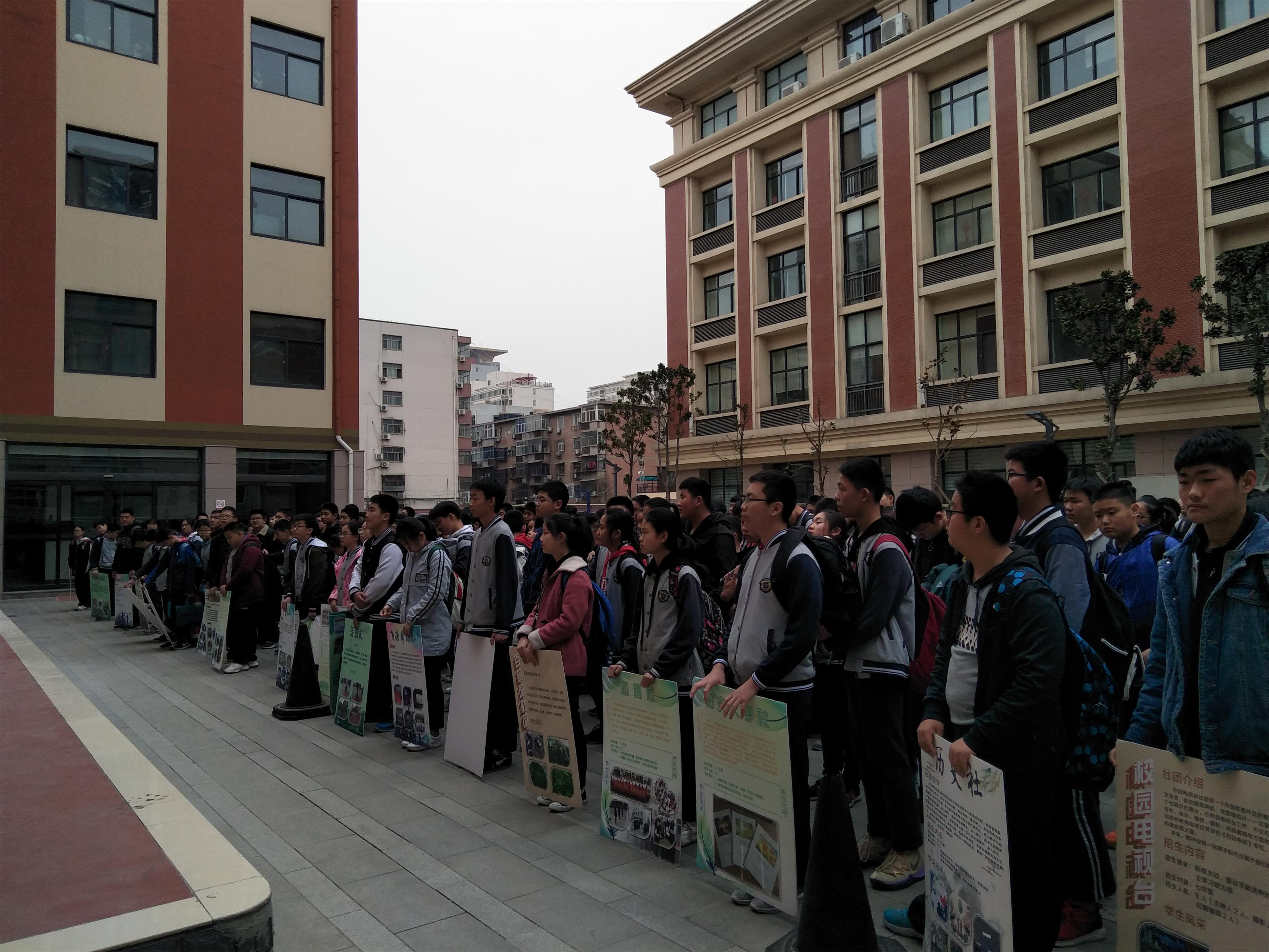 在开课前,各社团团员在学生会社团部的组织下在学校天井院分社团站队,集合迅速,纪律严明,充分体现了郑州34中学生自主管理取得了卓越的成效。