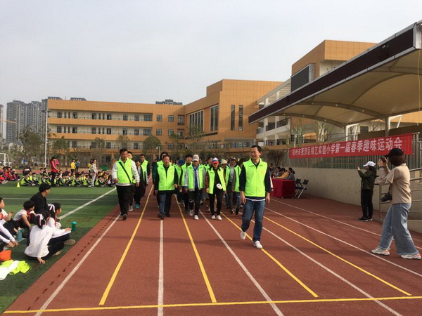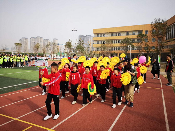 为了丰富同学们的课余生活,活跃校园气氛,促进同学们的身体健康,增强各个班级的凝聚力。3月27日,郑州市惠济区锦艺实验小学召开第一届春季趣味远动会,陈红娜副校长主持开幕式