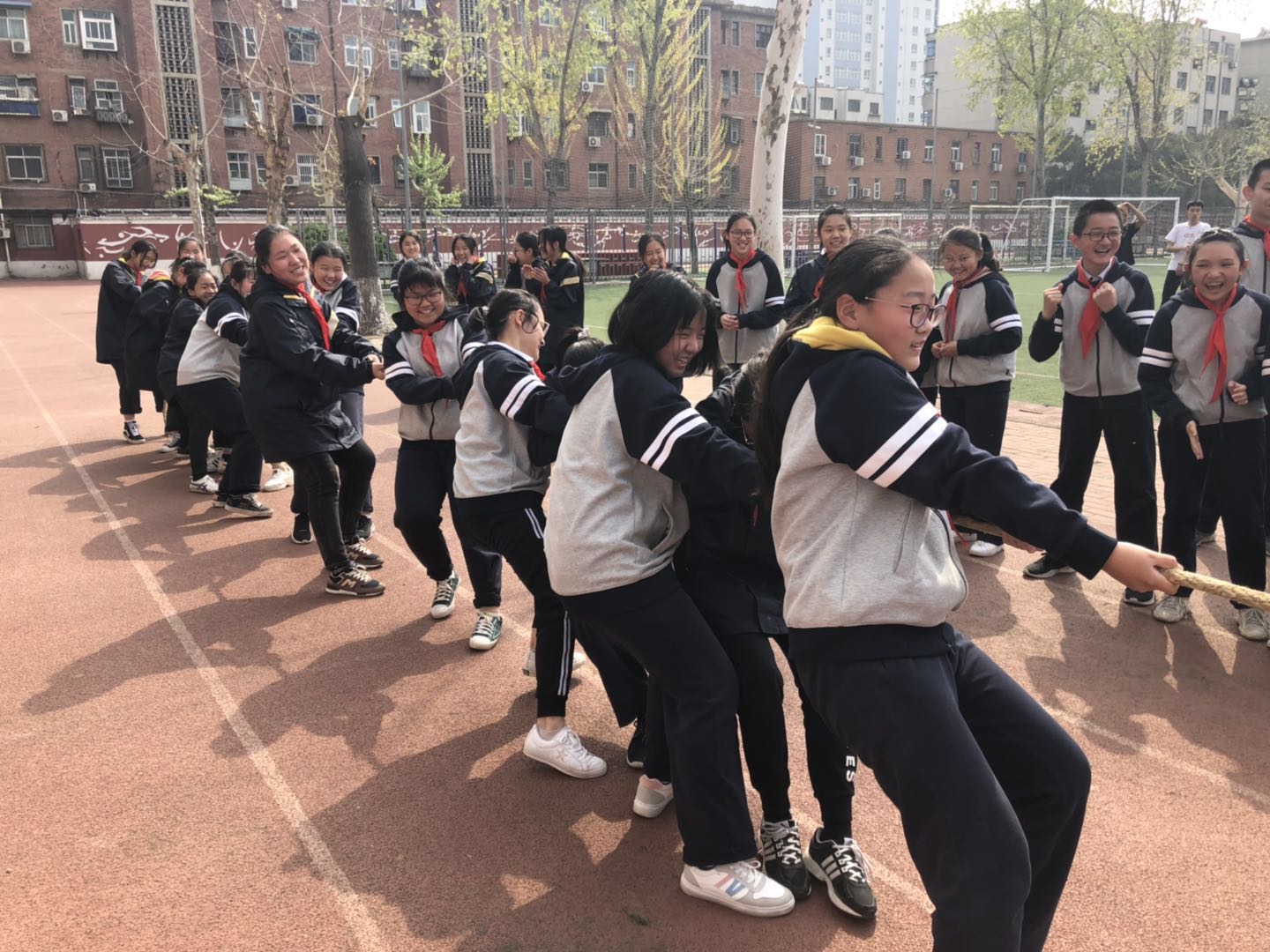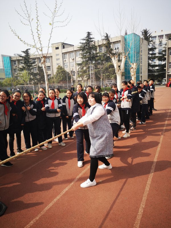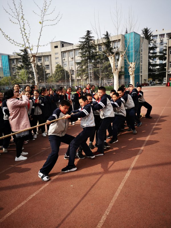 明媚三月,天气渐渐回暖,郑州二中七年级学生走出教室感受这春天的勃勃生机。3月28日下午,郑州二中七年级学生在操场上举行了拔河比赛。