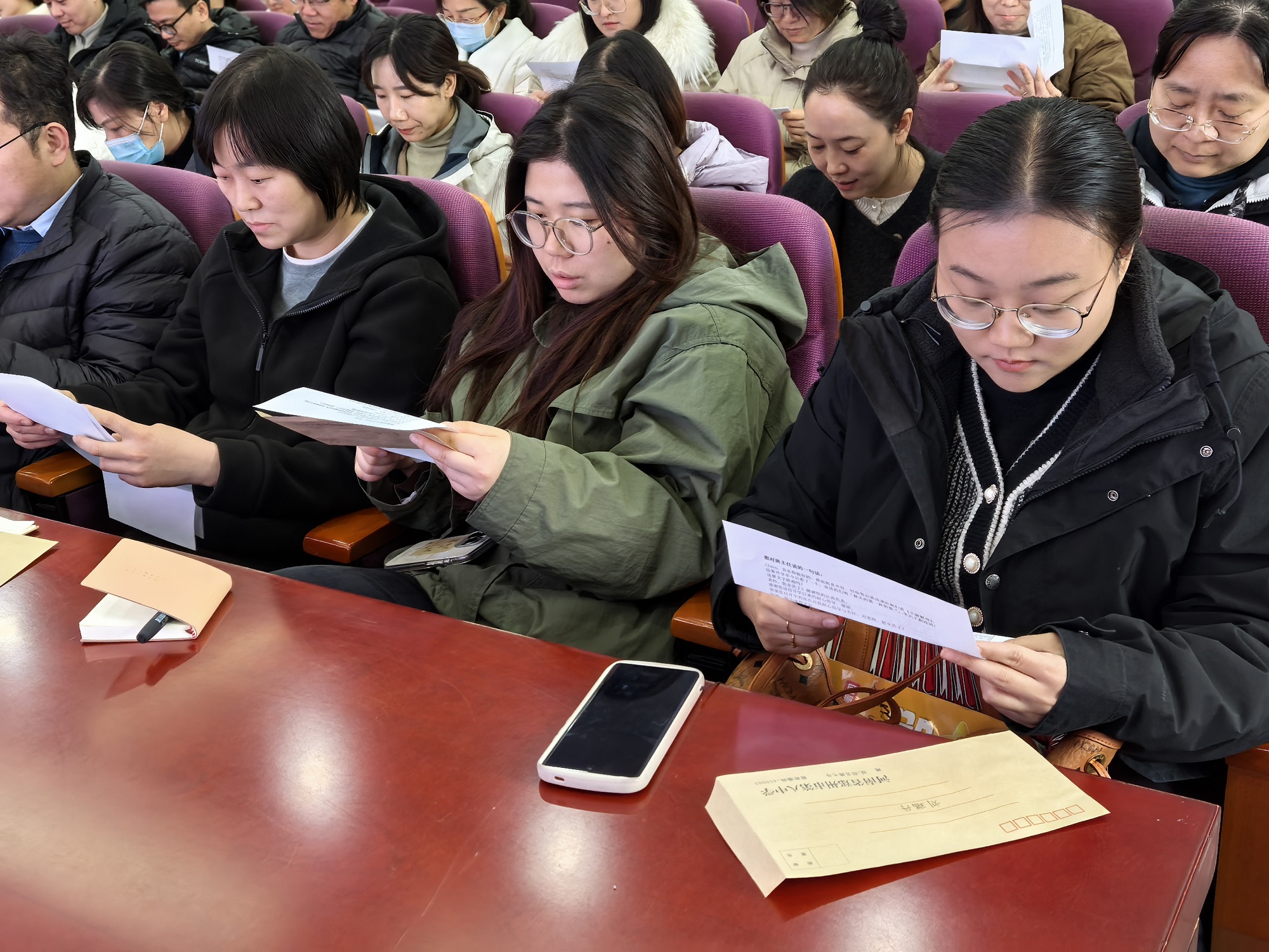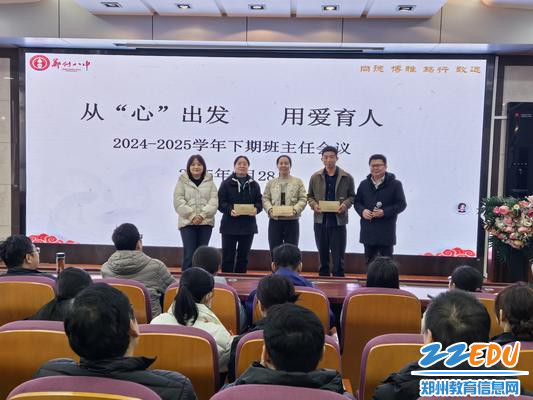 会议伊始,雷炀上台为霍冬冬、李平、丁文静三位年级长颁奖,感谢他们一学期以来对年级的辛苦付出。随后,郑州八中政教处主任甘铁权回顾并总结上学期学校德育工作管理中的具体情况,并把期末学生对班主任的评教以信件的形式进行反馈,在会上,公开展示了学生对张喜乐、方乐、李平等班主任评教语,孩子们纯真、坦诚、质朴的语言,无不表达着对自己班主任的爱和感激。班主任们也小心拆开学生对自己的评教信笺,认真阅读,也禁不住感动万分,他们纷纷表示,新的学期,一定要更加用心带班,用爱育人。