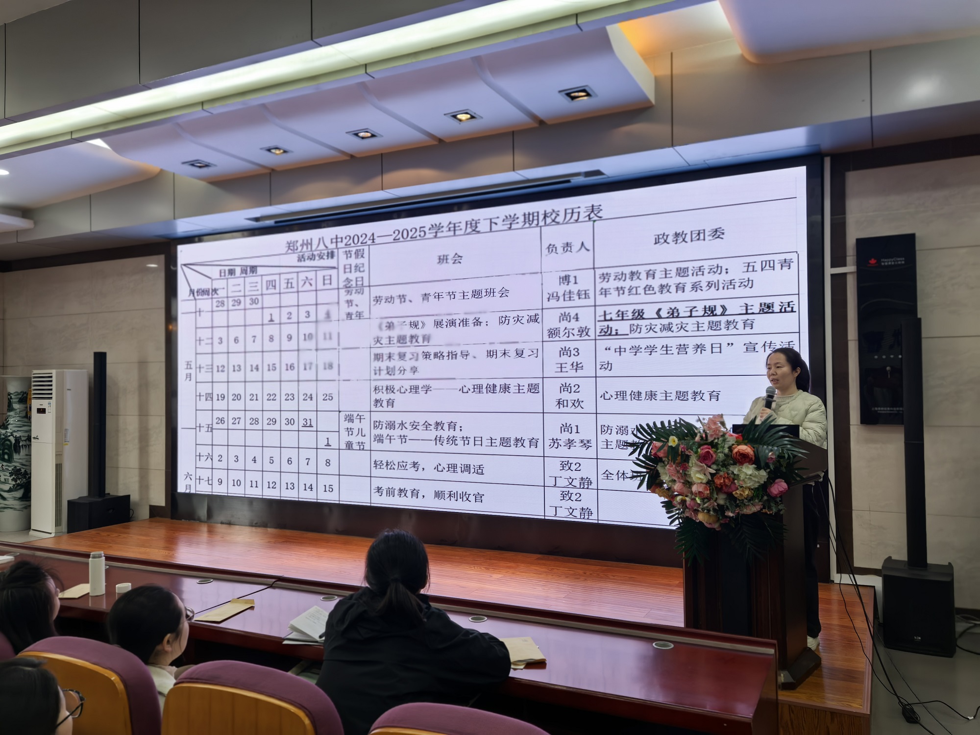 为进一步加强学校的德育工作,提高班主任队伍的整体素质,做好做实做细新学期德育工作,确保新学期教育教学工作有序展开,2月28日上午,郑州八中在多功能报告厅召开以“从‘心’出发 用爱育人”为主题的新学期班主任工作会议。郑州八中副校长雷炀及全体班主任与会,甘铁权主持会议。
