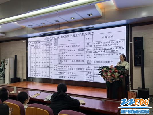 随后,七、八年级年级长丁文静和李平展示年级新学期班会课计划,两位年级长协同年级班主任一起,针对自己所属不同学段的学生,精心设计班会课内容,从学习、生活、思想等方面全面推进德育课堂建设。
