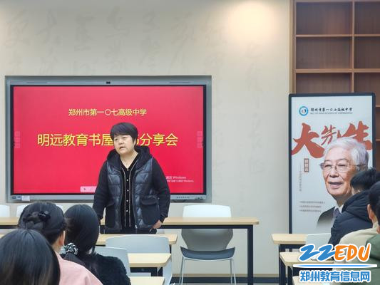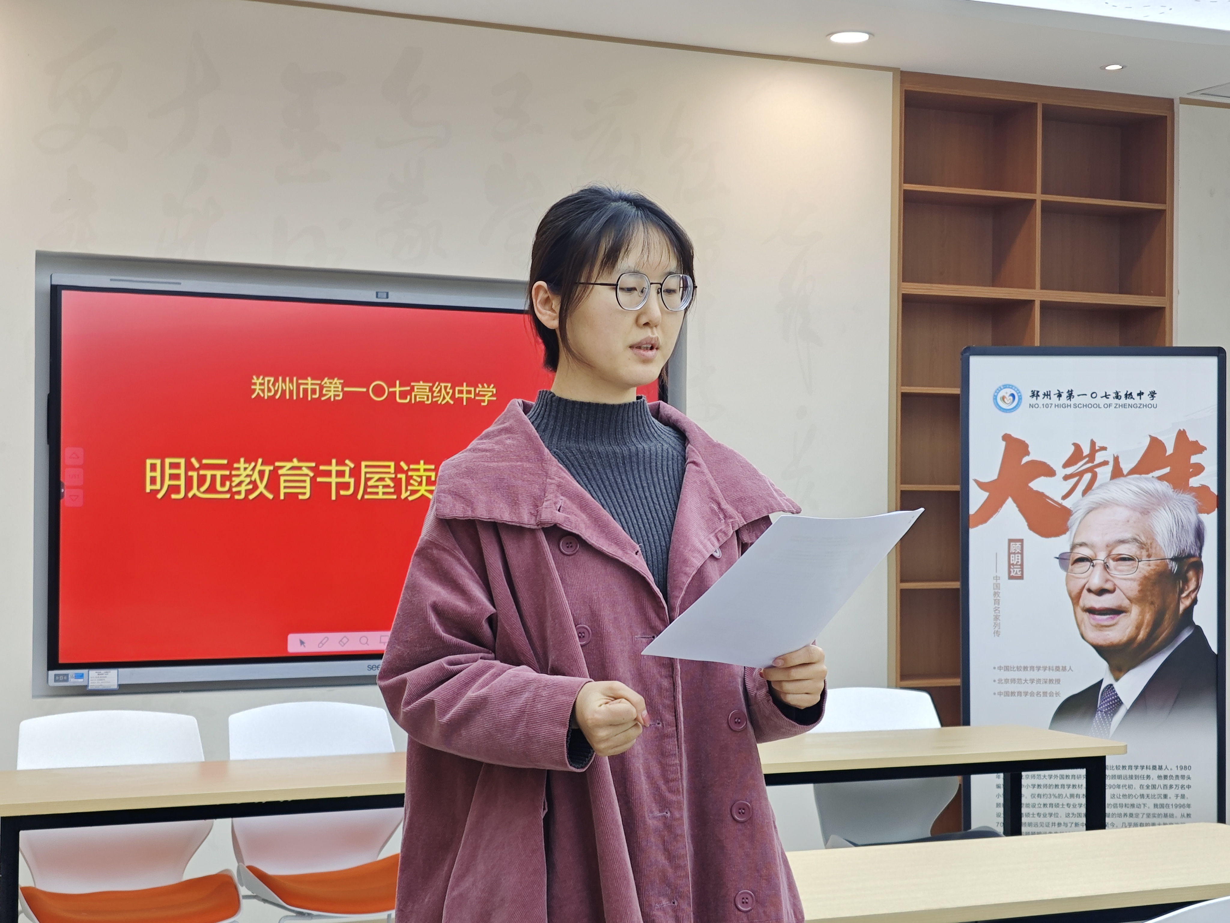 为弘扬教育家精神、深化教育实践改革,2月27日下午,郑州市第一〇七高级中学在学校图书馆召开高一年级青年教师读书分享会。本次活动以“阅读·教育·成长”为主题,围绕顾明远先生的新作《热风集:顾明远教育沉思》展开交流。校长丁红、教师发展处主任陈莹、教务处主任李磊出席会议,高一年级全体青年教师参加会议,青年教师们积极分享自己的阅读感悟。