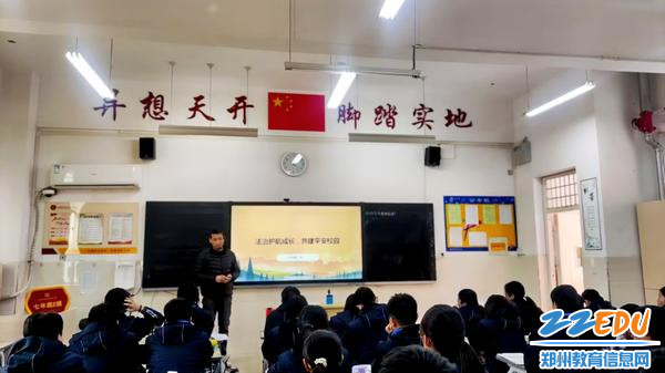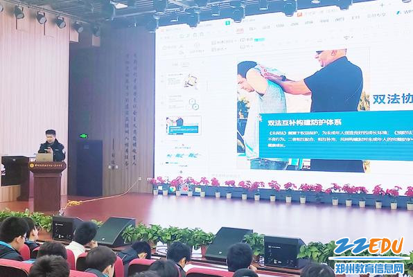 郑州经开区第六中学法治副校长王尔康为学生们讲授普法教育课