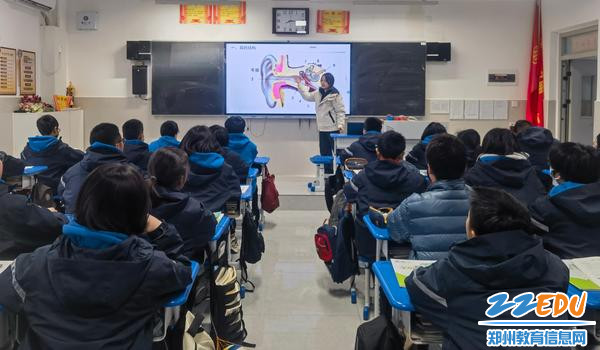 生物学科组刘冰月老师带领学生观看视频,了解全国爱耳日的来历和背景意义。