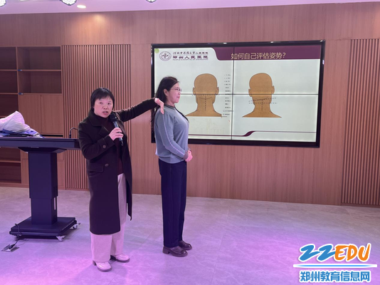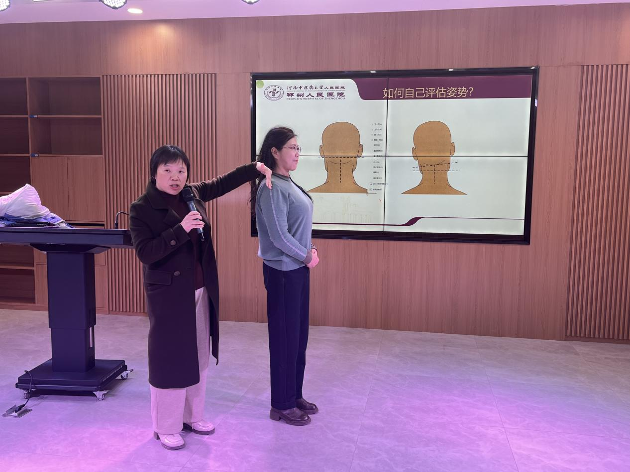 讲座中,牛延锋从人体的体态和疼痛讲起,详细阐述了不良姿势对身体产生的负面影响,如颈椎病、腰椎病、肩周炎等常见疾病的成因及预防方法。她通过列举大量生动的实例,如长时间低头玩手机导致颈椎前倾、久坐不动引发腰肌劳损等,让大家更加直观地理解了正确姿势的重要性。