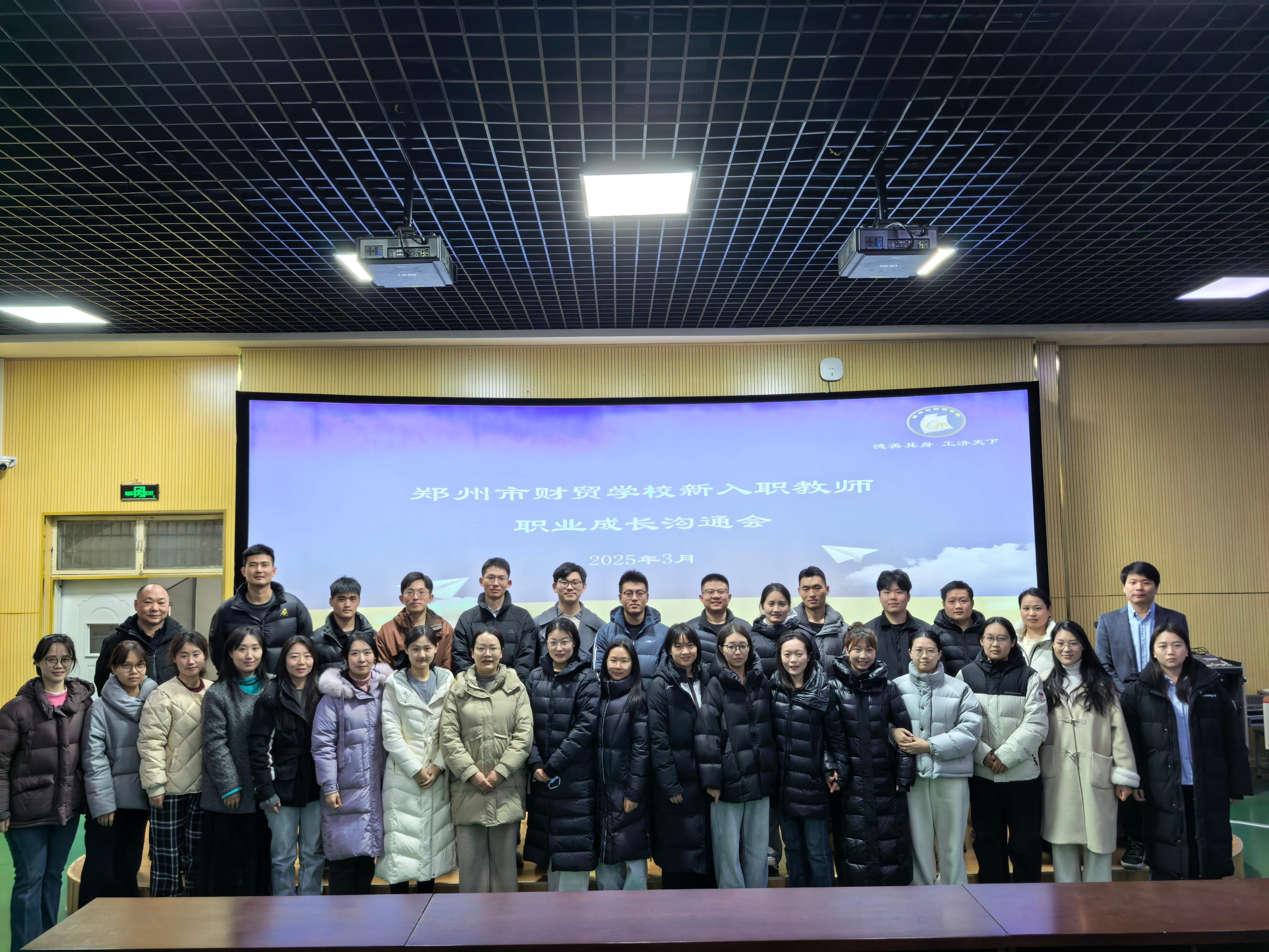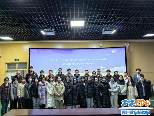 沟通会最后,全体新教师合影留念,标志着2025年“青蓝工程”正式启航。未来,郑州市财贸学校将持续优化教师培养机制,为新教师搭建多元化成长平台,助力他们在教育舞台上绽放光彩。