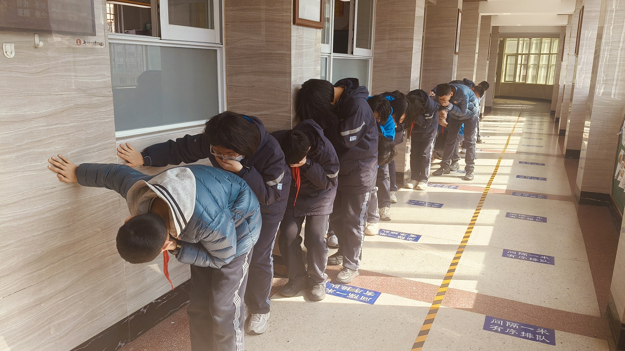 活动前期,郑州八中安全工作小组提前制定疏散演练方案,明确演练步骤、工作人员职责、疏散路线等具体要求,各班开展消防逃生知识学习,确保安全演练顺利进行。演练中,全校统一指挥、统一行动,随着消防警报声响起,各班教师迅速组织学生按疏散路线进行逃生,师生们按照火场逃生疏散演练技巧,以及 “手捂口鼻、猫腰、靠墙、降低重心、靠右走”的要求,快速离开教学楼,紧急撤离到操场安全地带,各班班长清点学生人数后上报学校。全校师生严格按照应急疏散演练方案,迅速行动,有条不紊,井然有序,全程仅用了3分35秒。