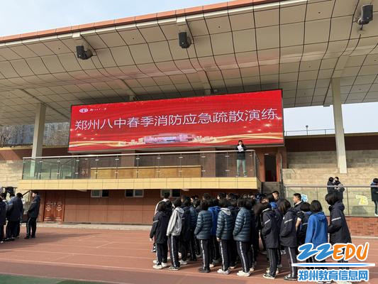 为进一步加强校园消防安全工作,切实提高广大师生的消防安全意识,提高师生防灾及突发事件应急处理能力,2025年3月5日上午,郑州八中开展消防应急疏散演练。