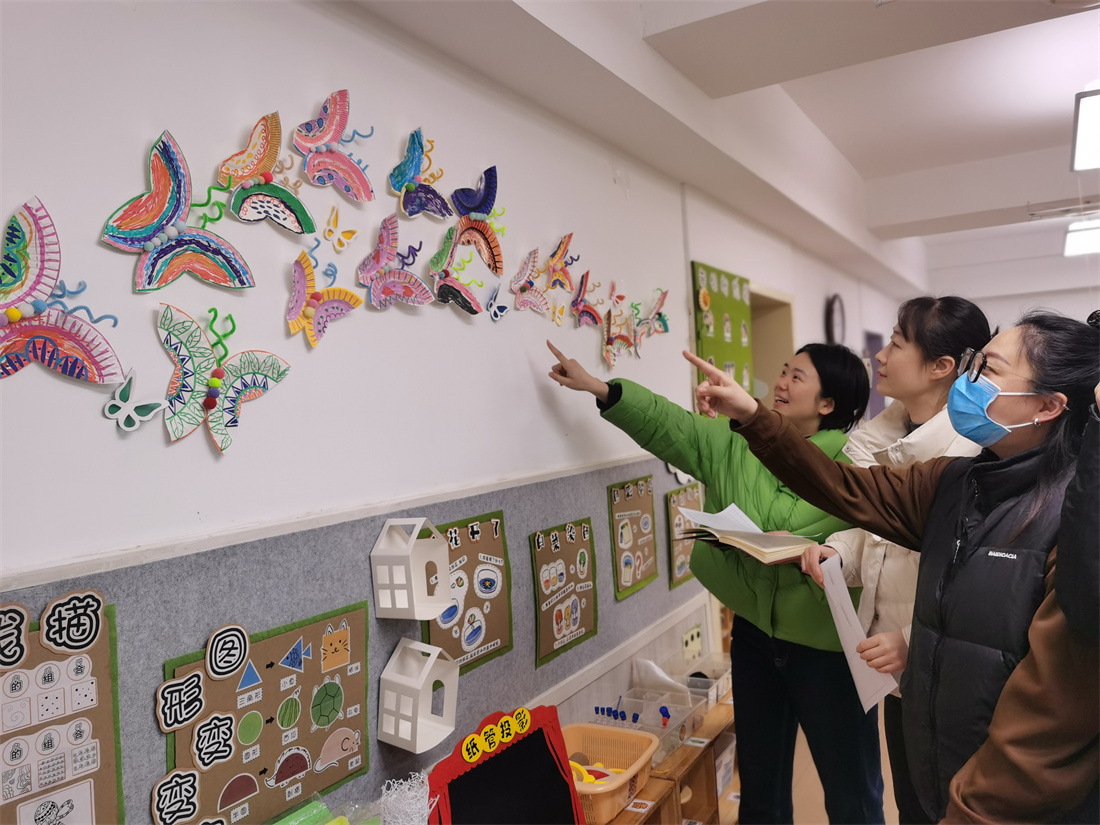 评比结束后,各年龄段保教主任分别组织教师对班级环境创设情况进行总结,强调环境需“看得见幼儿的学习过程”,避免过度装饰,对各班环境创设的优点及班级文化特色的设置给予了充分肯定。针对共性问题开展研讨,提出优化策略,如增加开放式问题墙、动态调整区域材料等。