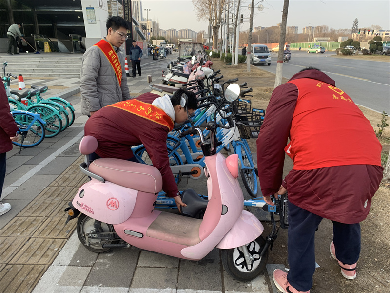 与此同时,另一支团员志愿者队伍在校团委郑向前老师的带领下,走进惠济区木马社区,开展卫生清扫志愿服务活动。志愿者们分工协作,认真清扫路面垃圾,擦拭公共设施,整理摆放电动车,劳动场面热火朝天。经过大家的共同努力,社区环境焕然一新,为居民营造了干净整洁的生活环境。木马社区的居民们对本次活动给予了高度评价,赞扬学生们展现出的奉献精神与良好素养,不仅为社区环境美化贡献力量,更为社区注入了青春活力。