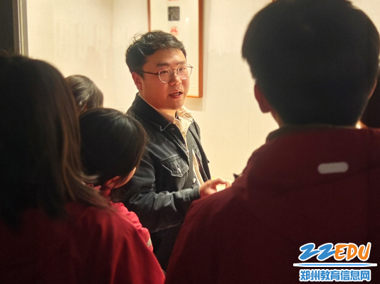 郑州市第二十四中学教师夏晓东给学生们讲解参展作品