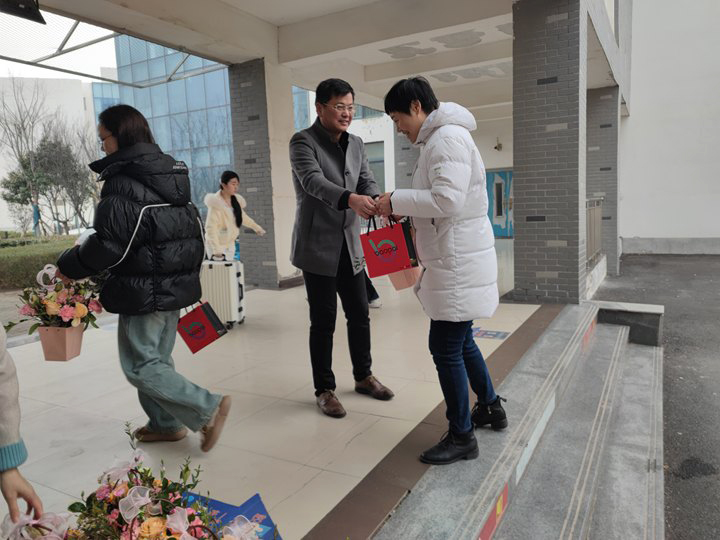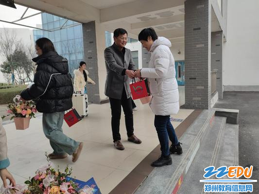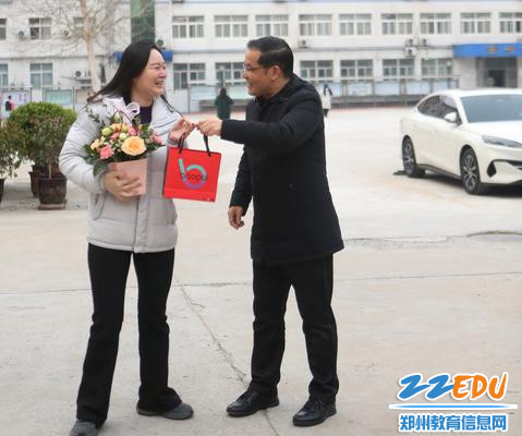 郑州市经济贸易学校党委书记牛红国给女教师送节日祝福