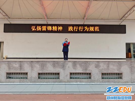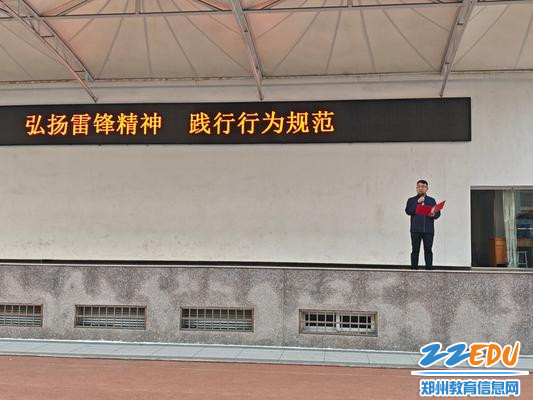 郑州市第三十一高级中学政教处负责人李玉海作总结讲话。他结合同学们就餐、文明礼仪、日常行为规范等,对大家提出要求和建议,鼓励同学们将雷锋精神内化于心、外化于行,学习雷锋无私奉献、乐于助人的精神。