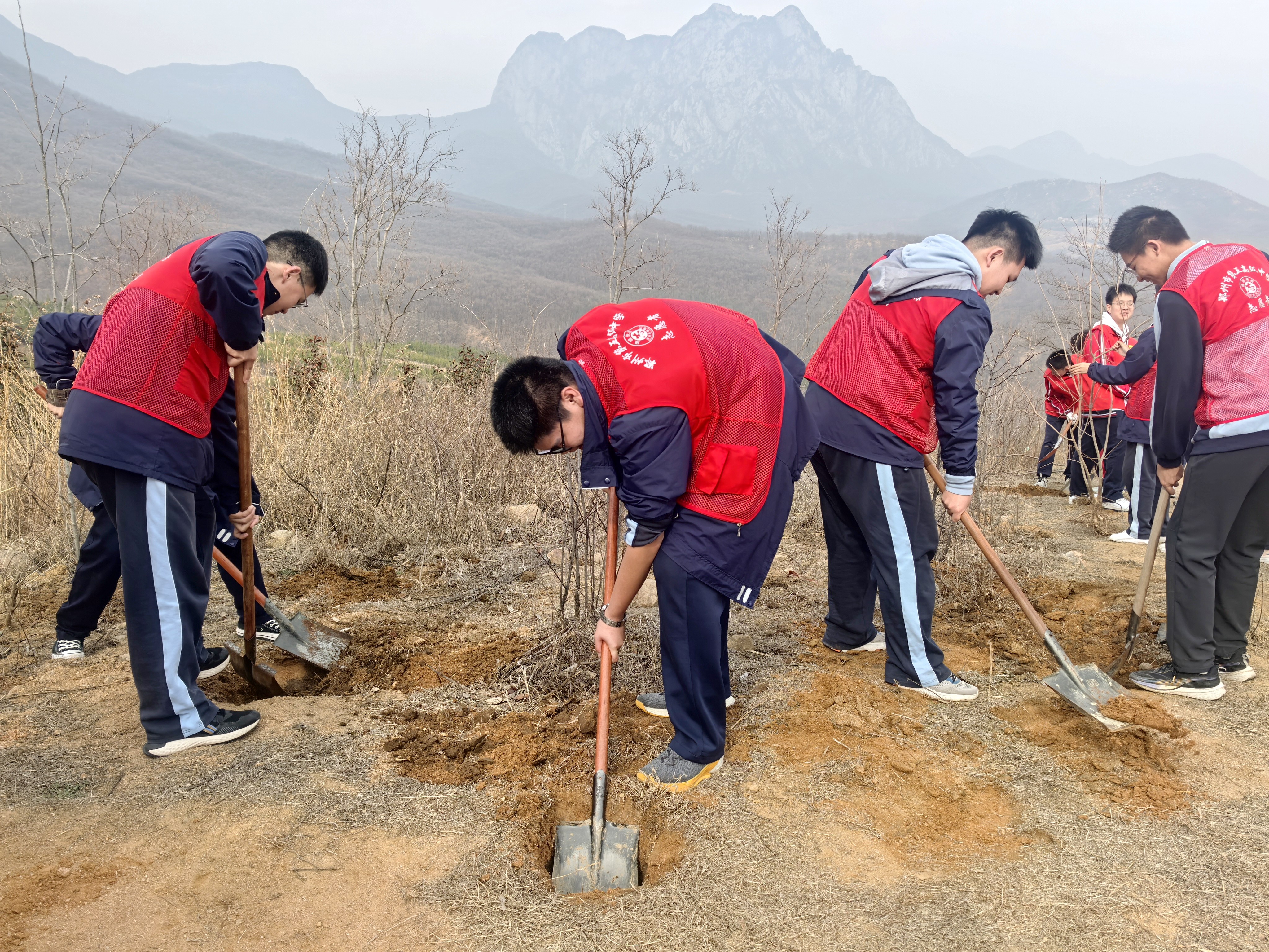 春回大地,万物复苏,又到了植树添绿的好时节。在第47个植树节来临之际,为提升青少年的环保意识,3月12日,郑州市第五高级中学的52名师生代表奔赴登封植树基地,开展义务植树活动,齐心协力为地球增添新绿。