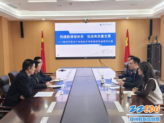 3月13日下午,郑州市教育局普通高中新课程实施情况调研组来到郑州市第四十四高级中学,就学校新课程实施情况进行调研。学校党委书记贾洪波,副校长刘长庚、王景义及相关处室中层分别进行汇报并与检查组深入交流。