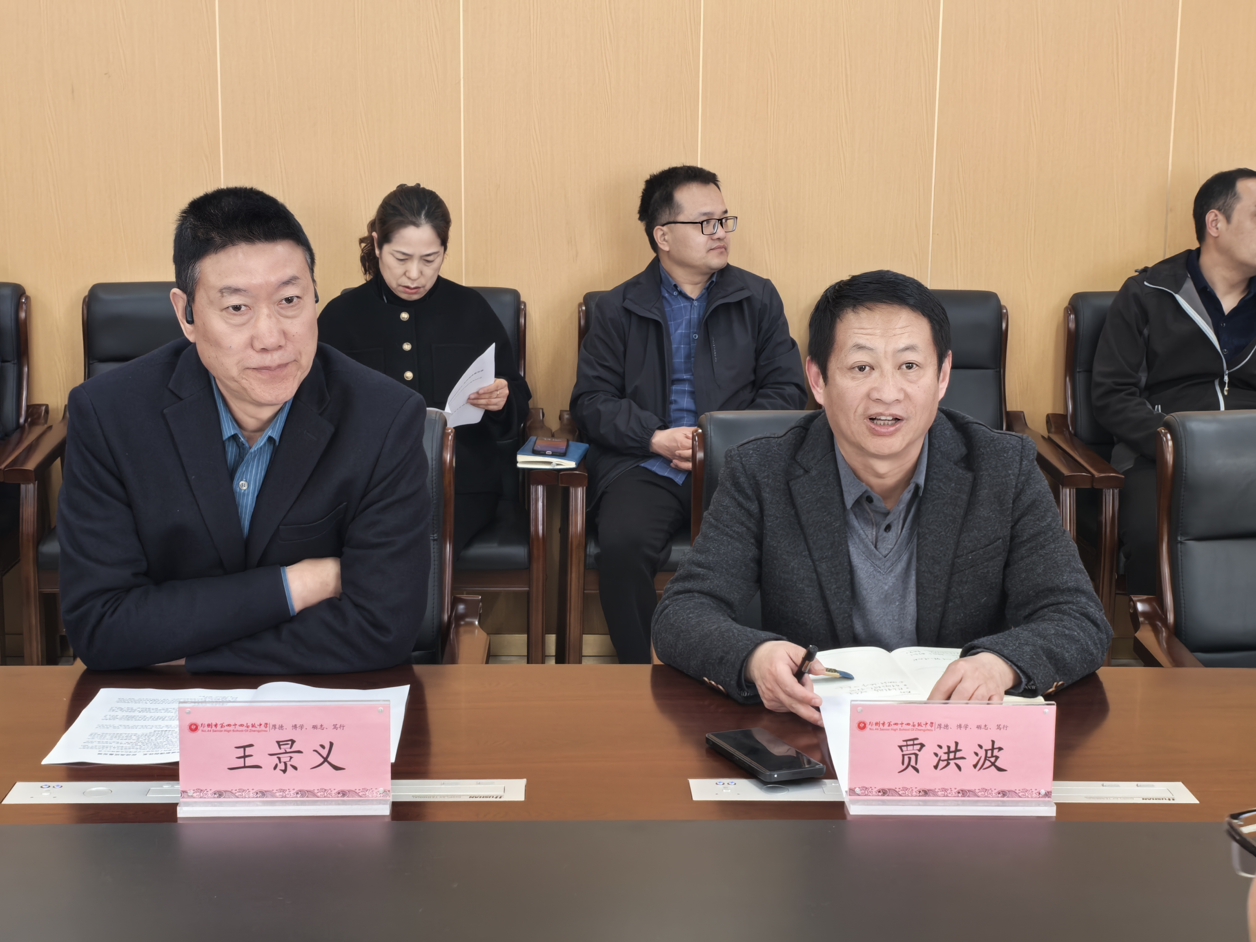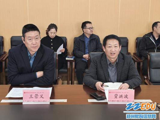 党委书记贾洪波(右一) 副校长王景义(左一)参与新课改调研交流现场