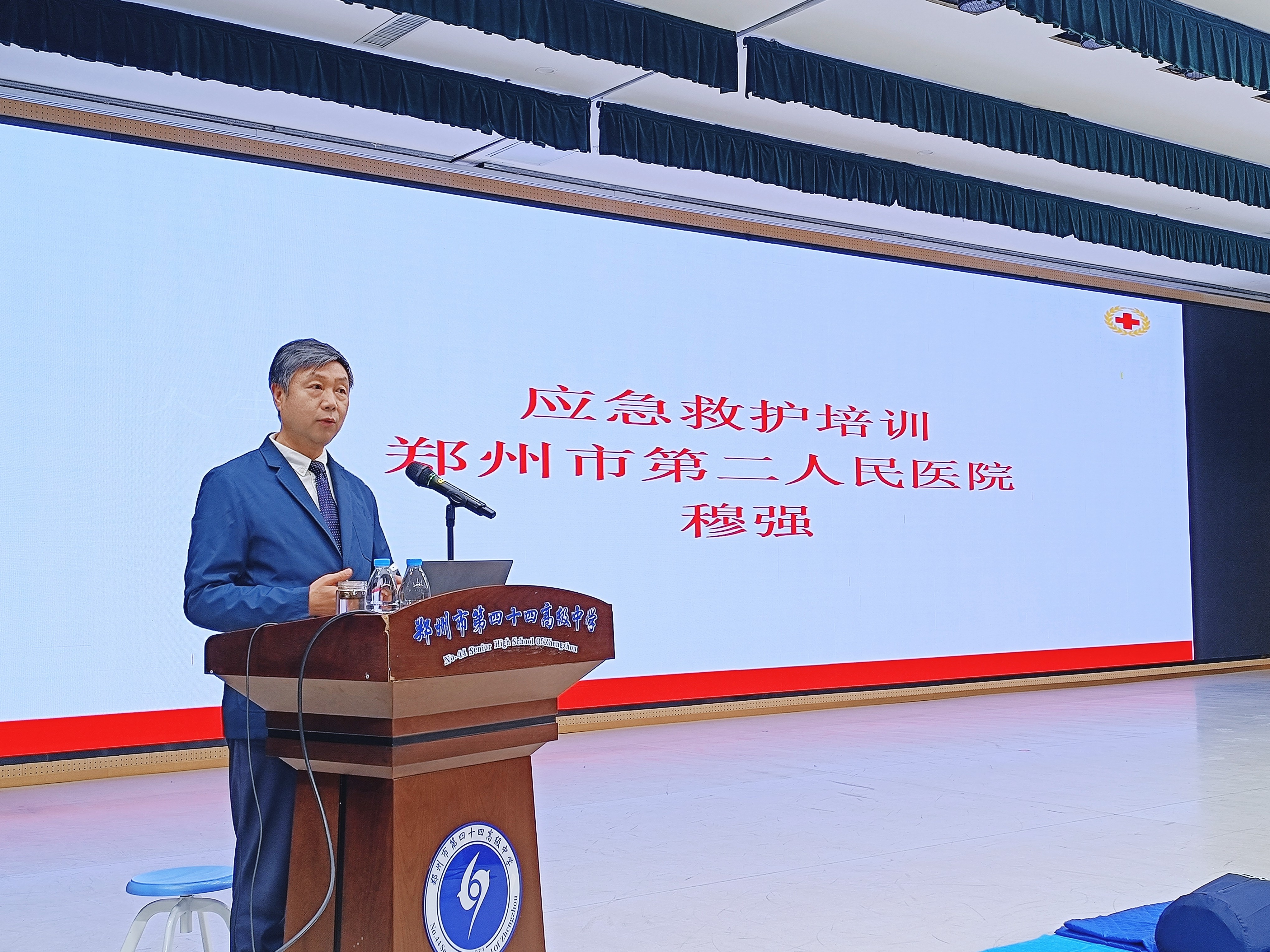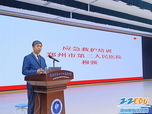 学校特邀郑州市第二人民医院泌尿外科主任医师、应急管理专家穆强为同学们讲授应急救护培训知识