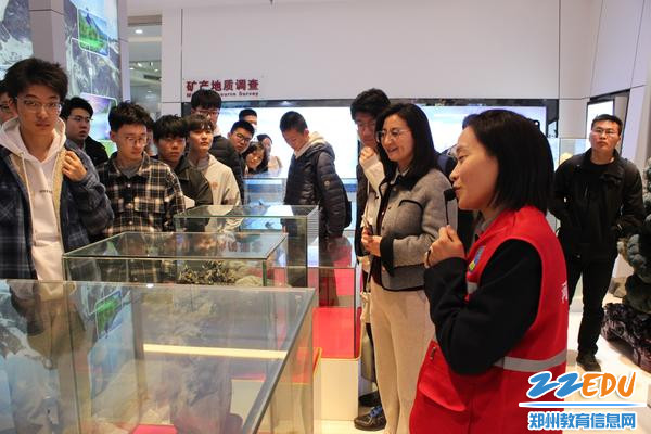 步入地质展览馆,仿佛踏入时空隧道。陈列的矿物与化石标本无声诉说着地球演化的恢弘篇章。在岩石展厅,同学们驻足于璀璨夺目的水晶簇前,惊叹于天然宝石的斑斓色彩;俯身观察远古化石的细腻纹路,感受生命演化的奇迹。"原来一块岩石就是一部地球简史!"有同学感慨。通过展馆讲解员的专业解读,同学们不仅认识了辉锑矿、方解石等典型矿物,还了解到地质构造运动如何塑造中原大地的山川脉络。科学与艺术的交融,让抽象的地质知识变得鲜活可触。
