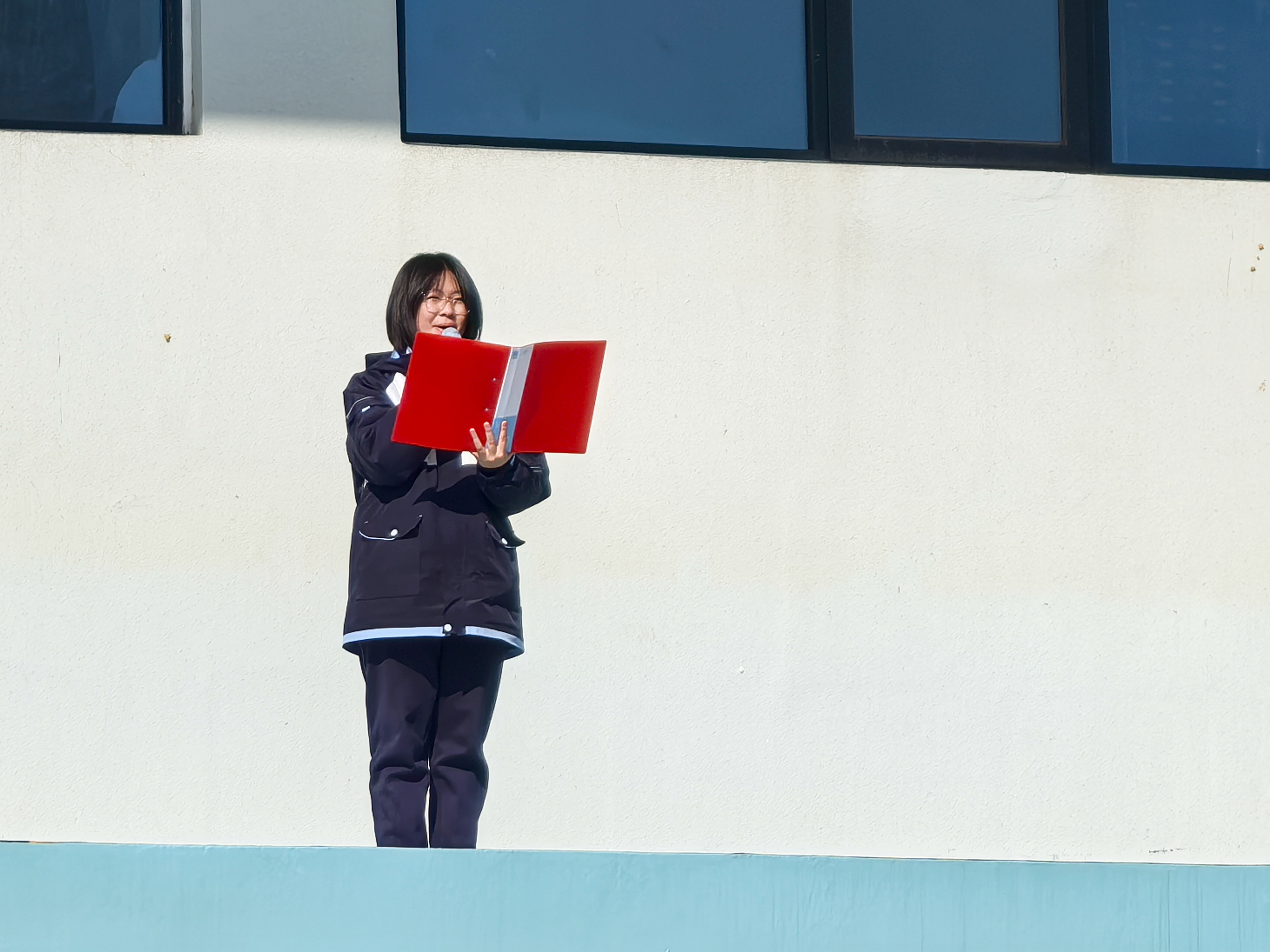 “每个水龙头的滴水声,都是地球母亲的叹息。”柴辛瑜用诗意的语言唤醒环保意识,提出“三位一体”行动方案:在认知层面成为冰川守护者;在行为层面化身节水践行者,倡导“一水多用”“间隙关阀”等十多项节水技巧;在传播层面担当文明使者,通过创作节水标语、设计文创作品扩大影响力。他特别强调:“每次节水行为都是对未来的郑重承诺,我们节省的不仅是水资源,更是人类文明的续航时间。” 他的演讲赢得了全场师生的热烈掌声。