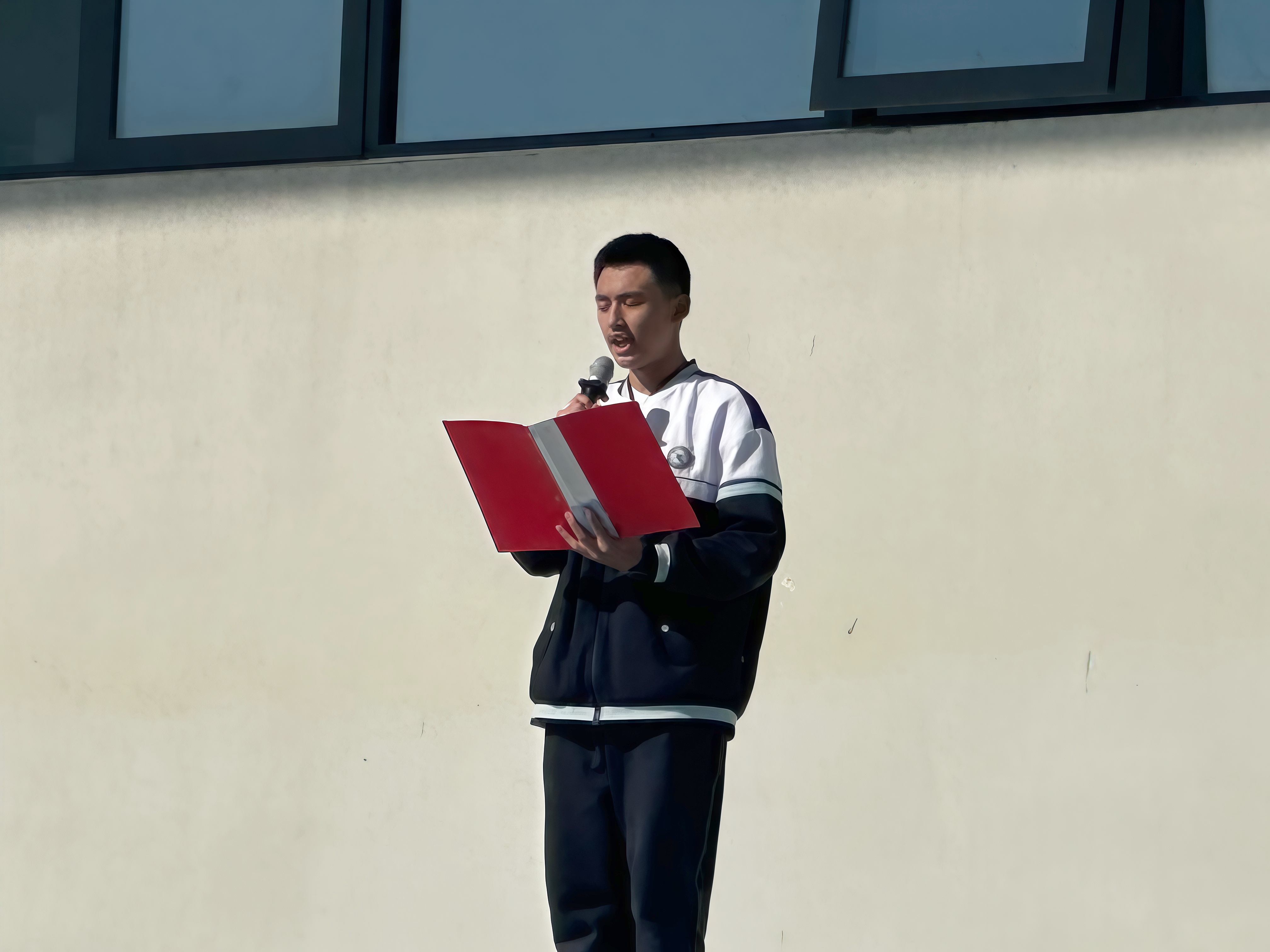 在庄严的国歌声中,高一1班柴辛瑜同学作为学生代表登上演讲台。他以《尚书》中“克勤于邦,克俭于家”的千年古训开篇,结合大禹治水、都江堰水利工程等历史智慧,生动诠释了“勤俭精神是中华文明生生不息的密码”这一深刻命题。现场师生无不凝神倾听。