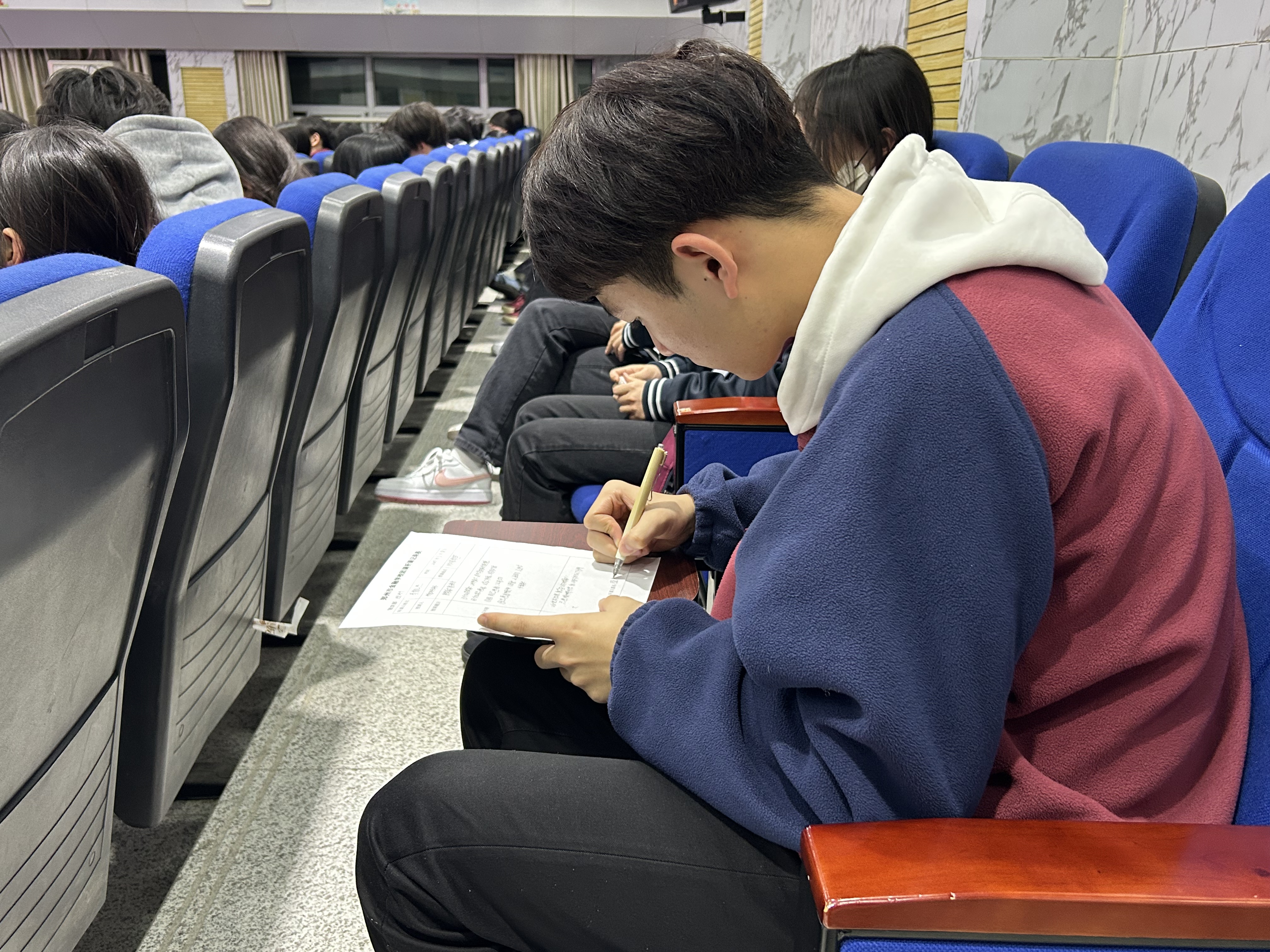 阶梯教室内学生认真学习团课精神