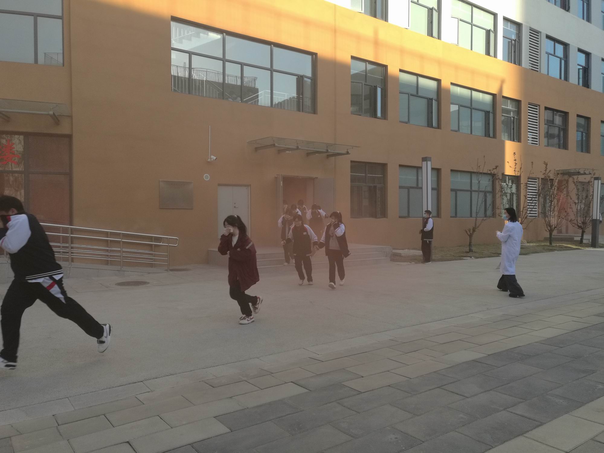 警报响起后,各楼层教师立即到达指定岗位,指导学生有序撤离。该校高一(5)班学生王雨晴回忆:"烟雾弥漫时确实有点紧张,但看到每层楼梯口的荧光指示牌和老师们的指引手势,心里踏实了许多。"同学们按照预案分东西两侧楼梯撤离,低楼层班级优先通行,高楼层班级自动形成两列纵队。校医老师携带急救箱在集合点待命,模拟处理“扭伤”“昏厥”等突发情况。