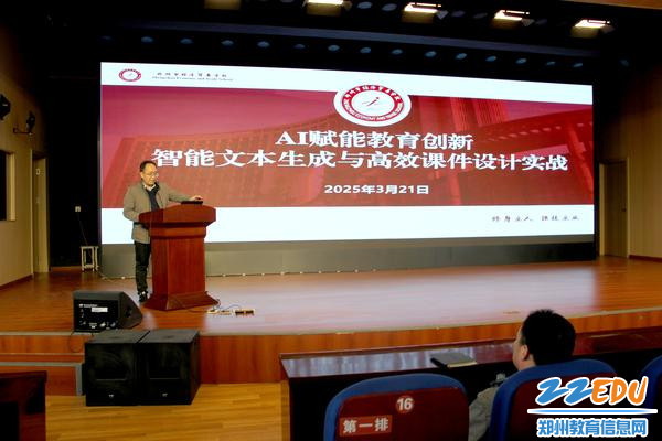 为了使人工智能技术优化教学流程,提升教师备课与授课效率。3月21日,郑州市经济贸易学校举办“AI教学工具速训营”活动。本次活动由学校数字化建设创新团队负责人赵必成主讲,全体教师参加。
