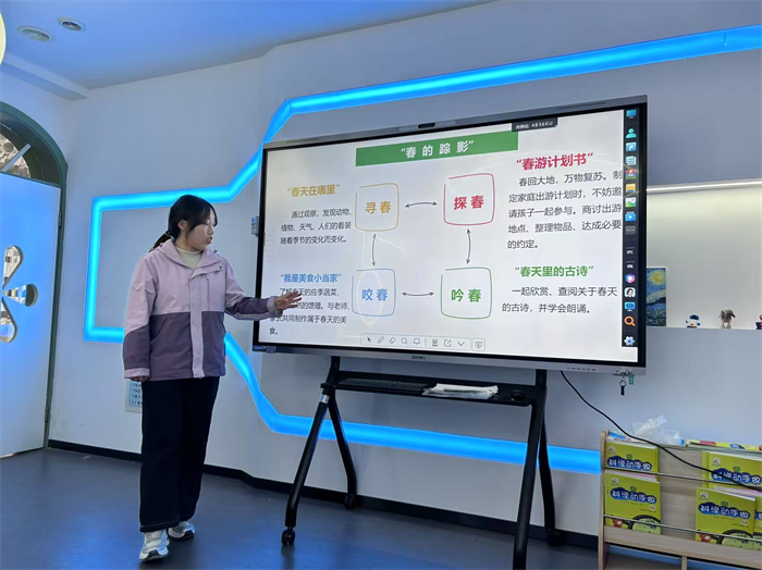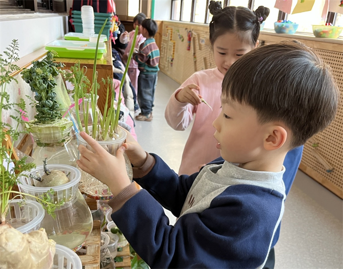 为了使孩子们能够积极地与春天“对话”,开学初,郑州市教工幼儿园以“迎春、咬春、探春、寻春、戴春、惜春”六个关键词,设计一套贯穿整个春季学期的园本课程。通过主题活动、班级活动、户外实践等形式,使幼儿在感受春天美好的同时,传承中华优秀传统文化。3月24日,郑州市教工幼儿园里春光明媚,不经意间春日已经遍布到幼儿园的每一个角角落落。