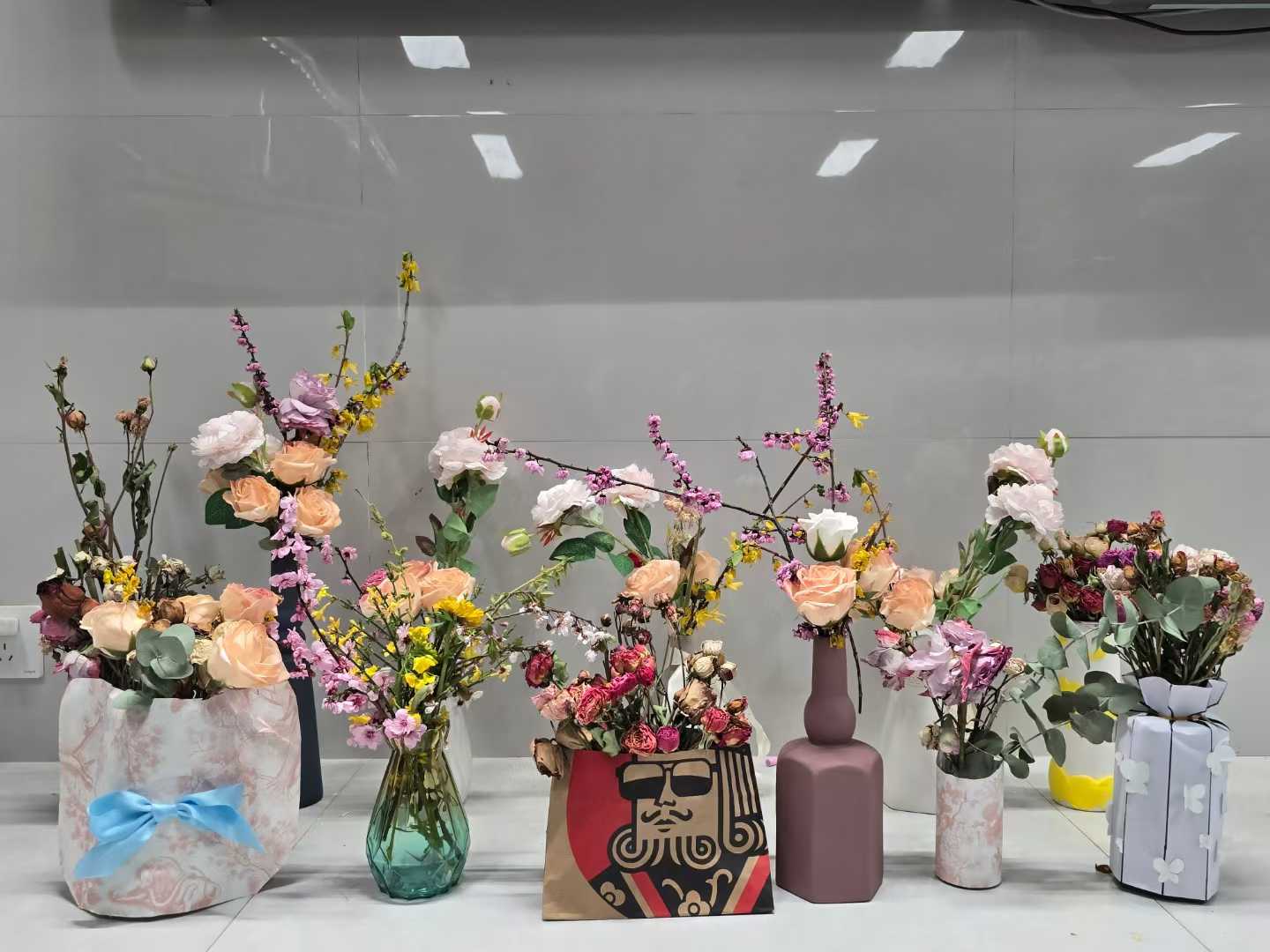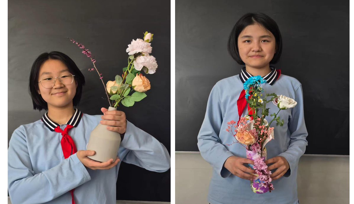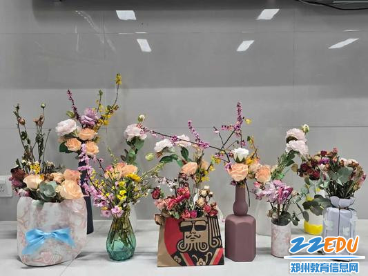 艺术源于生活,美感发自内心。随后,学生们沉浸在作品展示环节,将一束束生机勃勃的插花作品静静地摆放在洒满阳光的走廊上,以独特的姿态装点着校园的每个角落,使之充满春天的气息。手工制作的小花瓶伫立在宁静的窗台上,阳光透过玻璃窗洒进来,照亮了整个房间,也点亮了每一个人的心灵。花儿与少年是最美的定格,学生手中的花束是他们自信与决心的最佳写照,扑面而来青春的活力与无限可能。