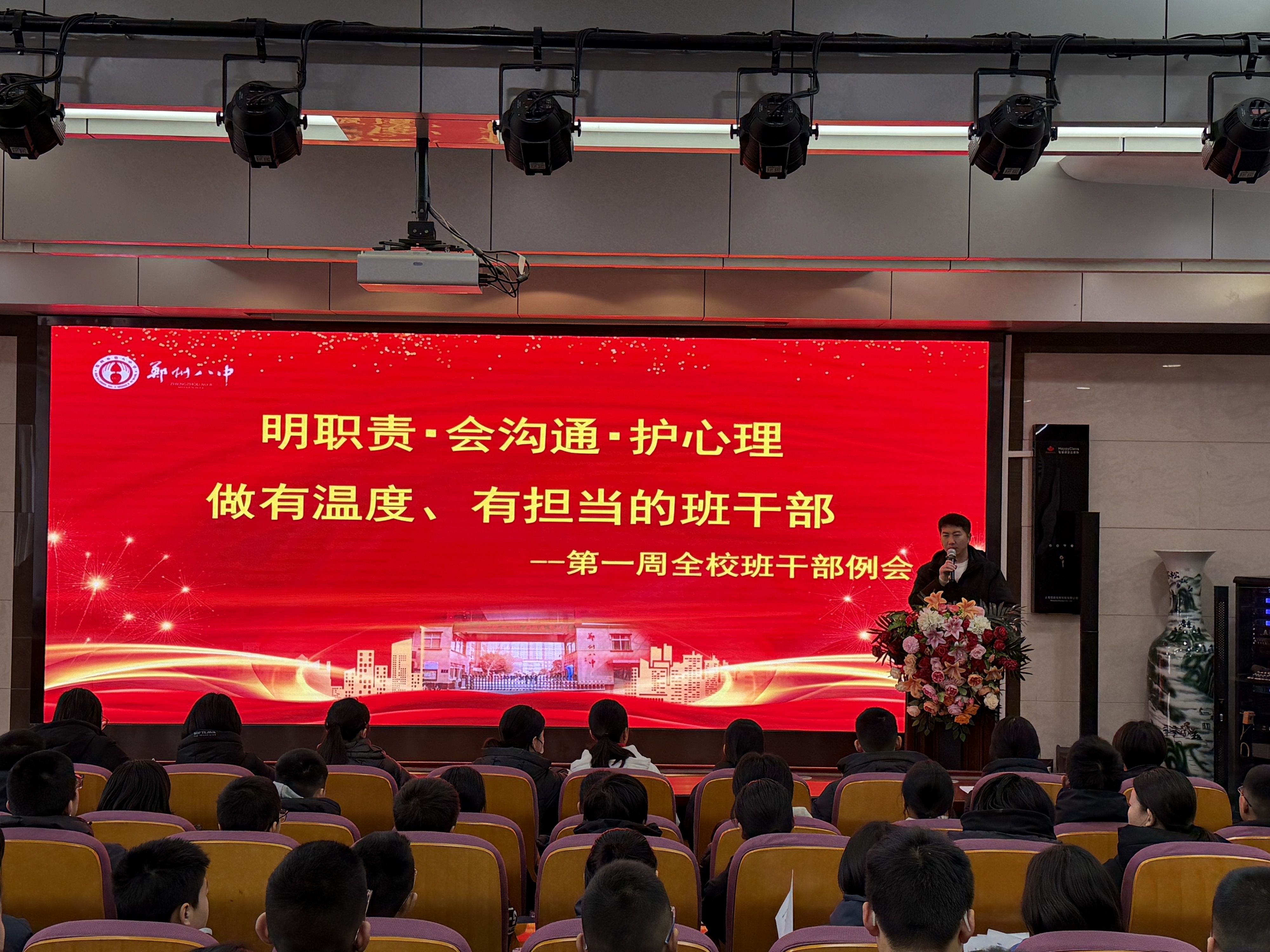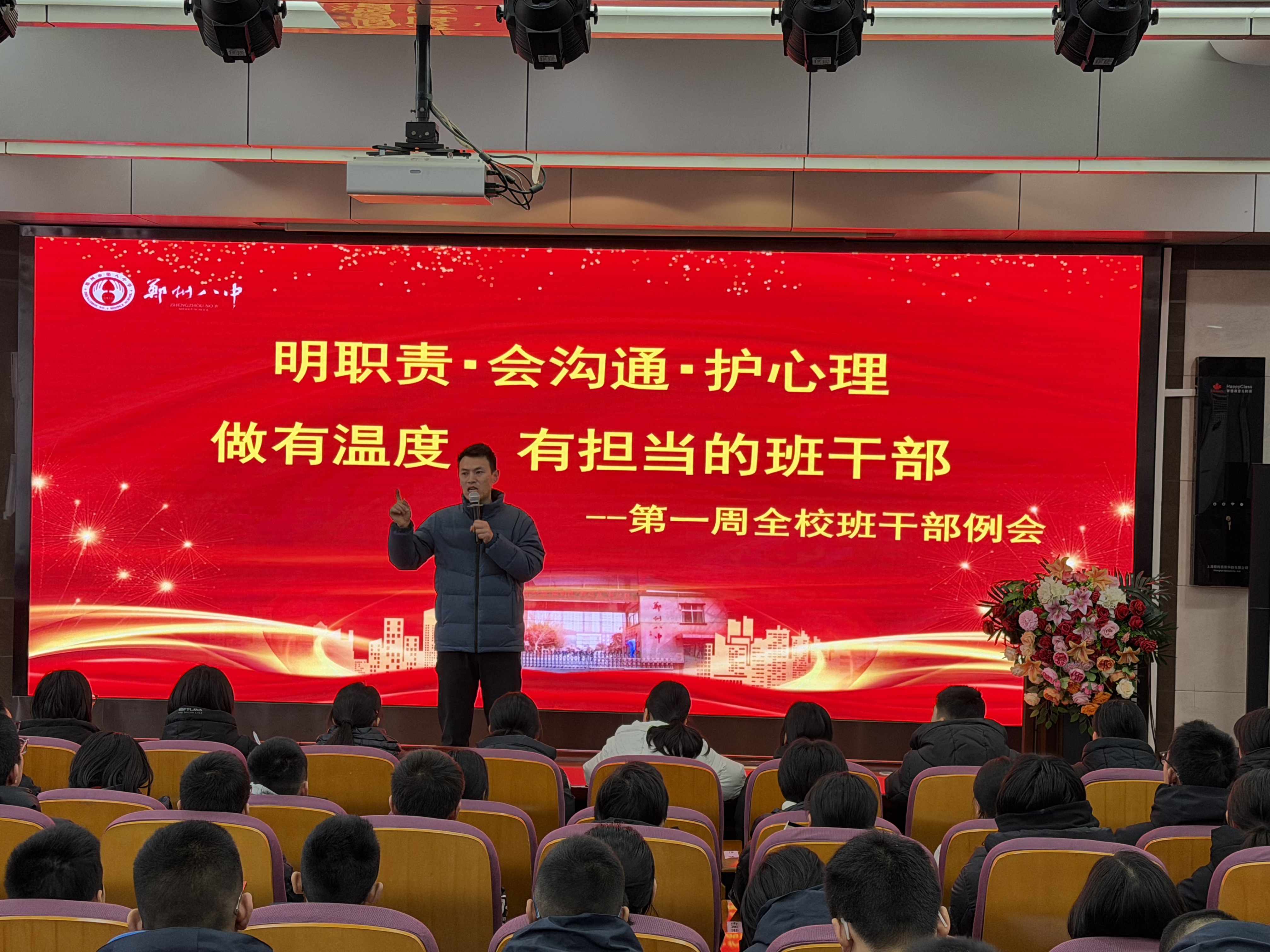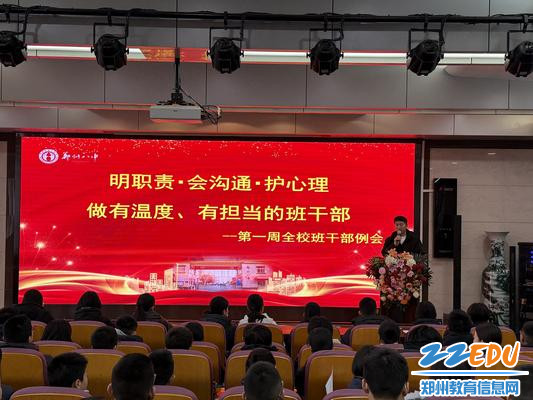 为筑牢学生干部队伍根基,提升班干部履职能力,强化班级心理关怀力量,3月6日上午,郑州八中召开以“明职责,会沟通,护心理,做有温度、有担当的班干部”为主题的专题工作会议。郑州八中三个年级的大队委、各班班长及心理委员齐聚一堂,接受系统培训,郑州八中团委书记孟祥艺主持会议并开展讲解,政教主任黄晓杰参加会议并发言。
