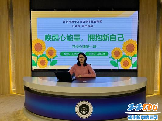 2026年3月10日下午,郑州市第十九高级中学面向全体学生开展以《唤醒心能量 拥抱新自己》为主题的开学心理第一课。依托积极心理学的专业支撑,活动以温暖而有深度的方式,帮助学生科学应对开学适应期,积蓄成长力量,为新学期注入“心”动力。