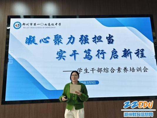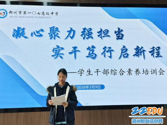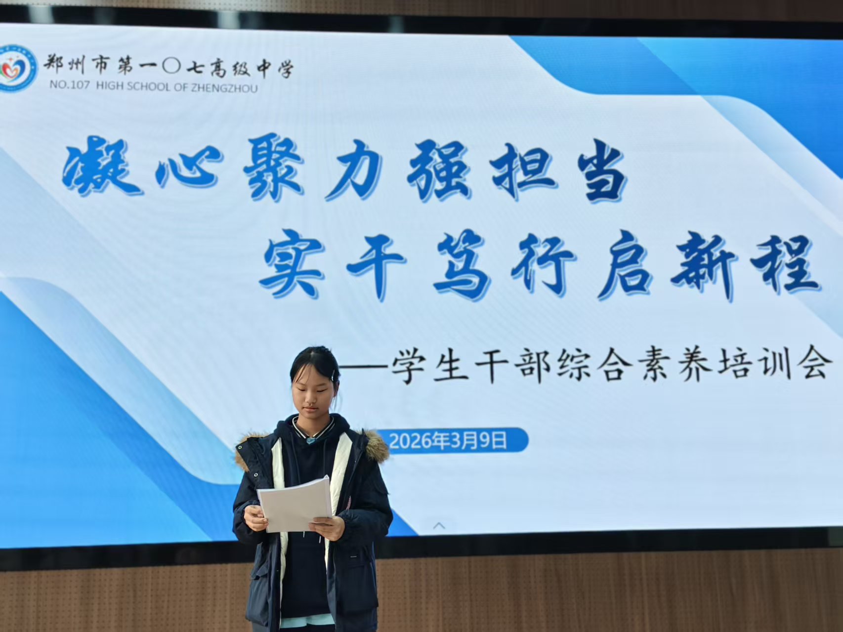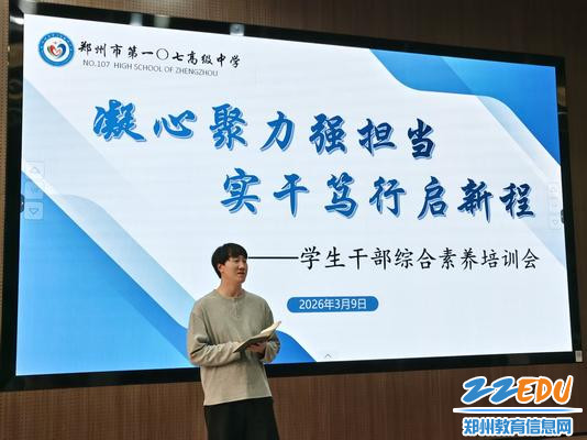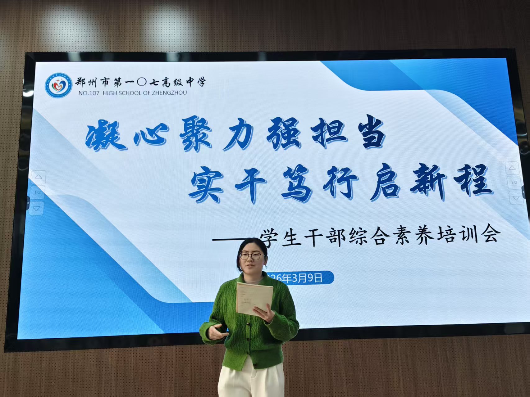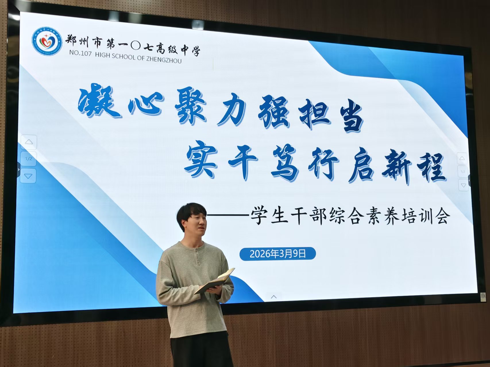 为进一步强化学生干部责任意识与服务理念,提升学生会工作效能,明确新学期工作方向,3月9日下午,郑州市第一〇七高级中学召开新学期学生干部综合素养培训会暨学生会第一次例会,明确本学期工作任务,明晰各部门工作规划。