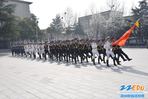 中原区文明办一行观看学校具有国防特色的少年三军仪仗队、反恐演习、无人机等军事科目表演