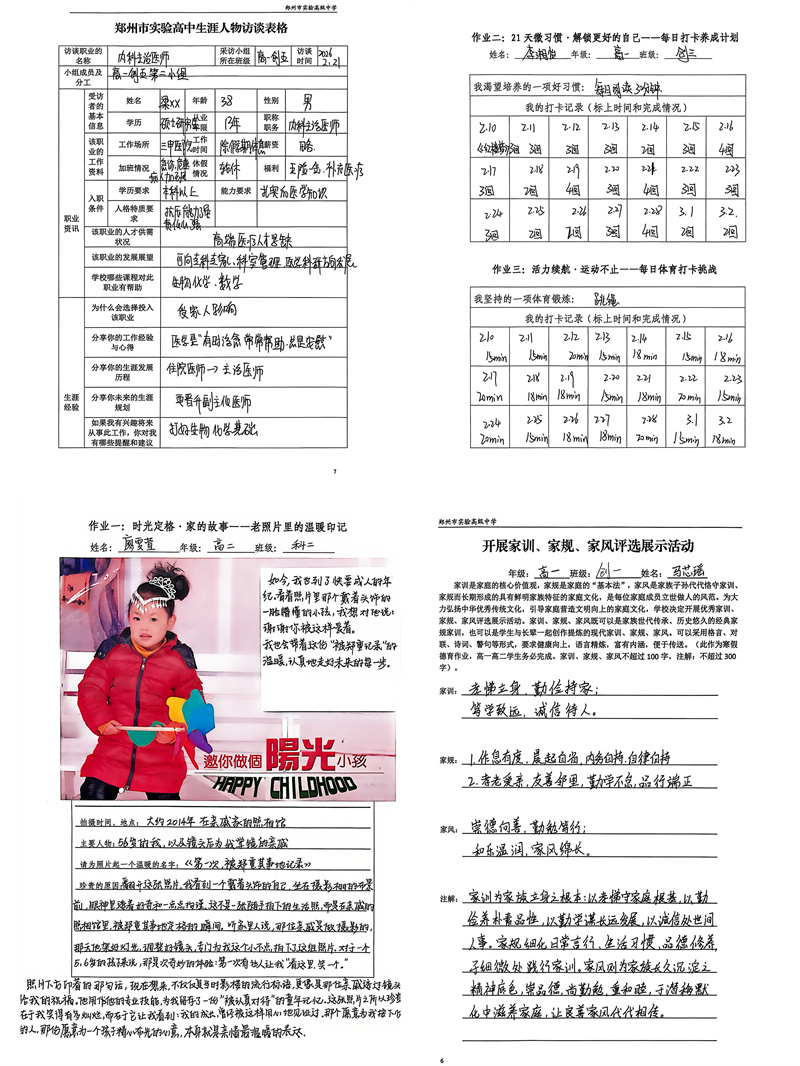 3月11日,郑州市实验高级中学的校园里暖意融融,一场别开生面的寒假德育作业成果展,吸引了全体师生的目光。没有枯燥的习题与机械背诵,取而代之的是泛黄的老照片、工整的打卡记录、鲜活的职业访谈心得,这份充满烟火气与成长感的特色作业,让学子的寒假过得充实又有意义,也让德育教育真正走进生活、贴近青春。