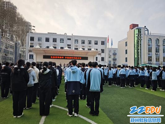 3月16日早晨,郑州市第三十一高级中学举行“弘扬雷锋精神 争做新时代好少年”主题活动,高一、高二年级全体师生、校领导班子及处室工作人员参加本次活动。