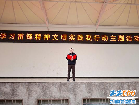 郑州市第三十一高级中学政教处主任张松峰围绕雷锋精神的核心内涵,强调要学习雷锋“心中有大爱”的高尚品质,他用贴近校园生活的实例,引导同学们从身边事做起,践行雷锋精神,并且号召同学们将雷锋精神内化于心、外化于行。