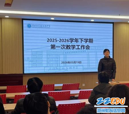 3月19日下午,郑州市实验高级中学召开2025-2026学年下学期第一次教学工作会,会议由教务处负责人兰龙主任主持。各年级长、学科组长、备课组长参与此次会议。学校校长李超、副校长刘继平、张霞到场指导工作。此次会议为新学期教学工作划重点、明方向,按下教学提质“快进键”。